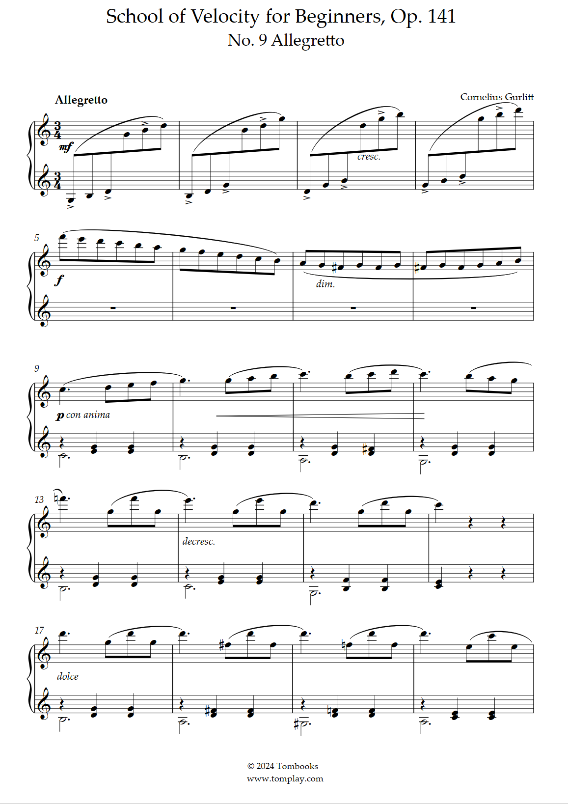 Cornelius Gurlitt : Ecole de vélocité pour les débutants, Op. 141 - No. 9 Allegretto