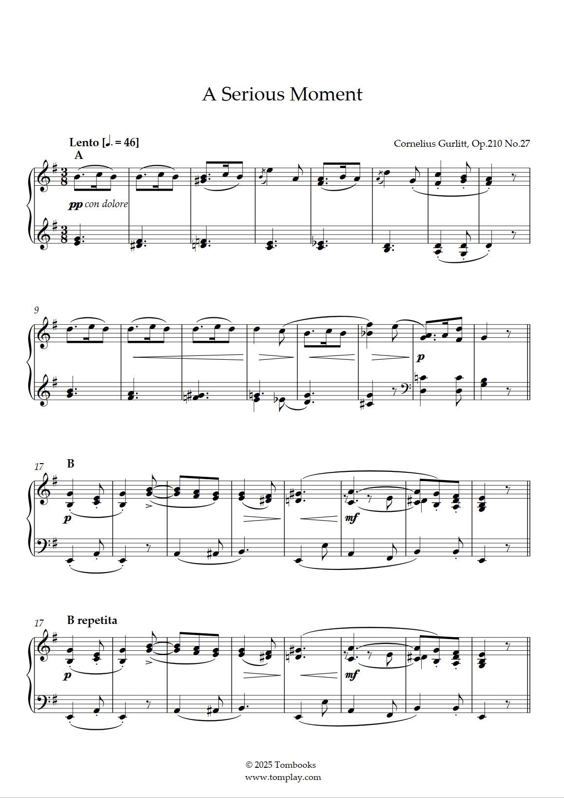 Cornelius Gurlitt : Les premiers débuts, Opus 210 - N° 27 Un moment sérieux