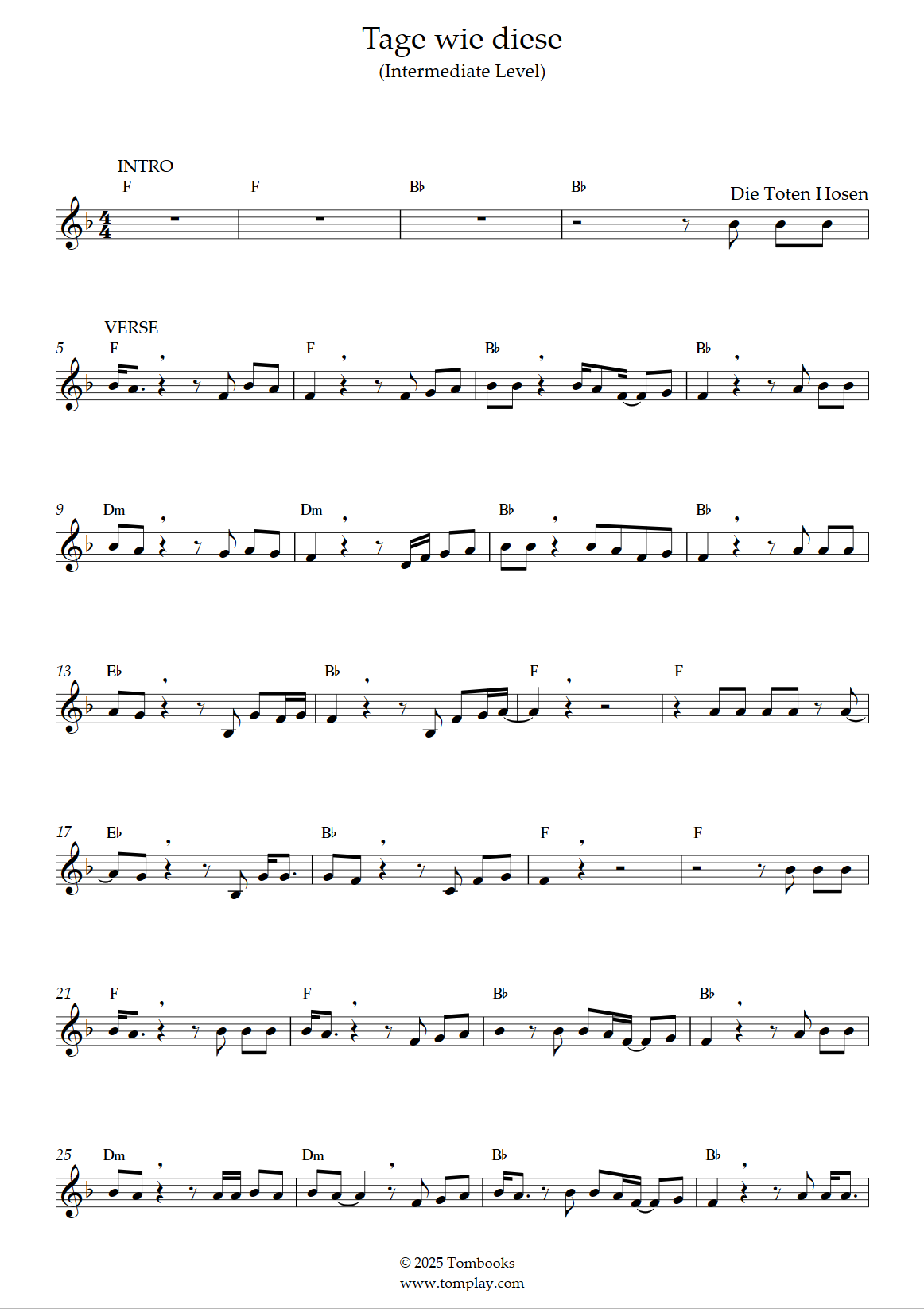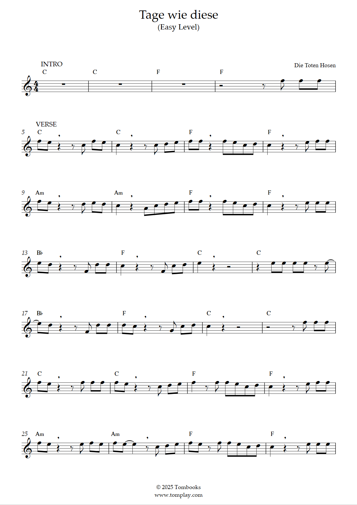 Die Toten Hosen : Tage wie diese (niveau intermédiaire, sax soprano)