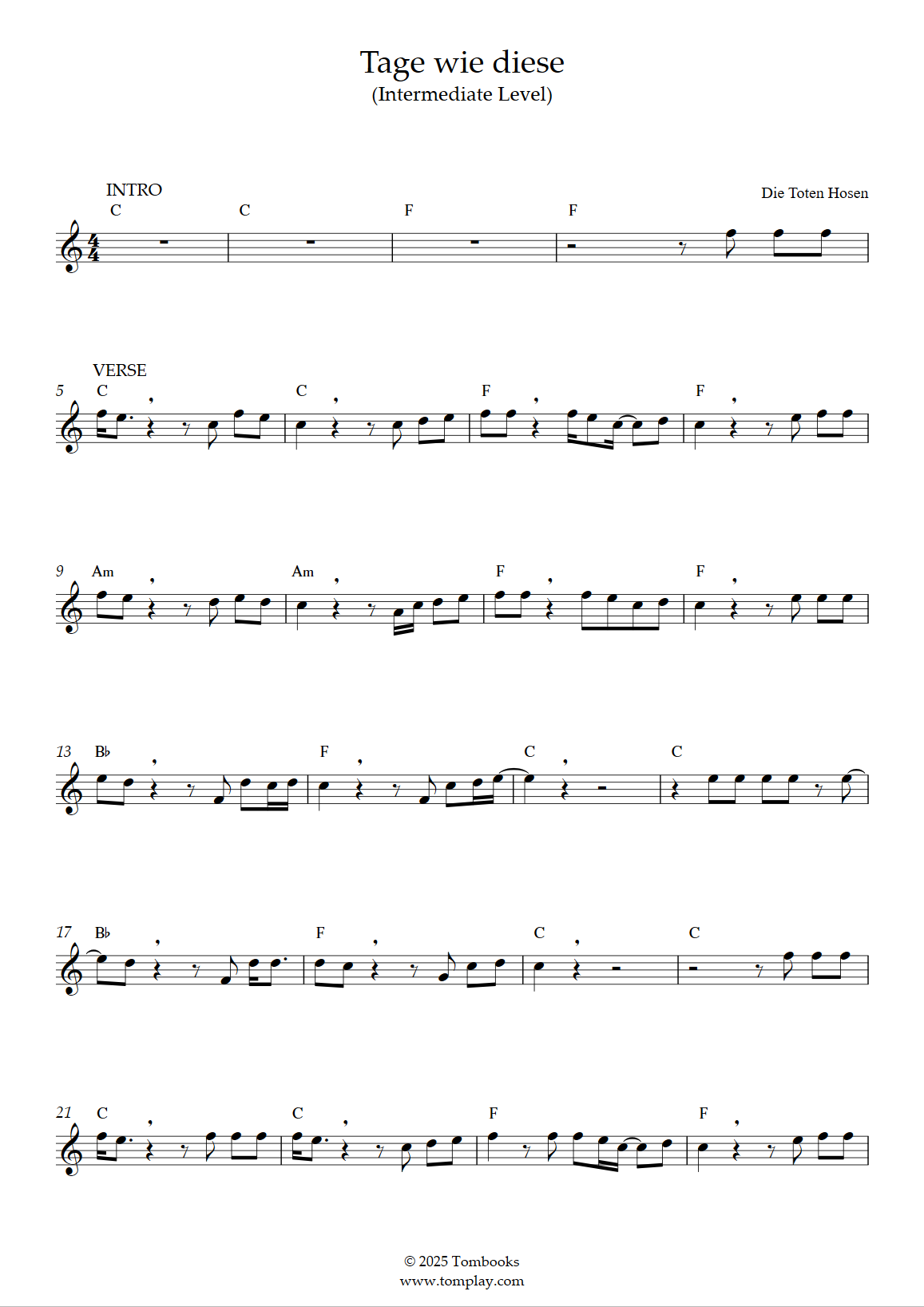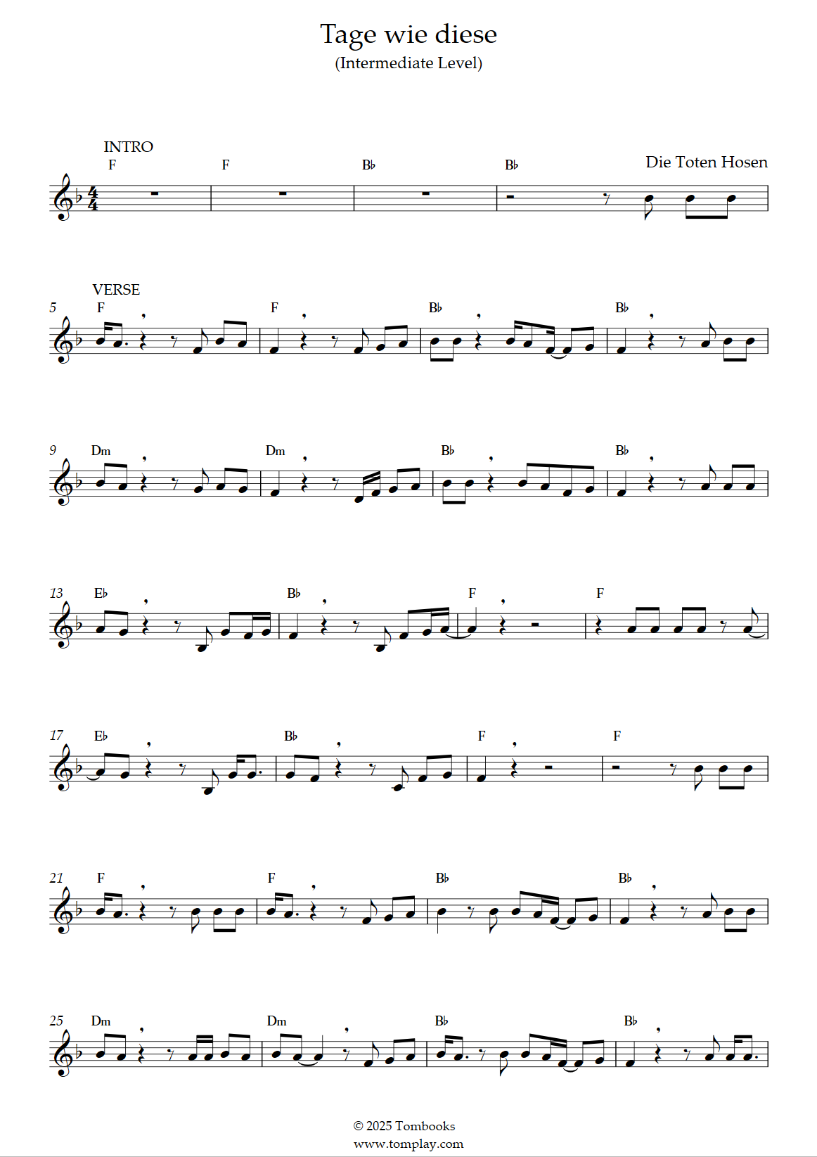 Die Toten Hosen : Tage wie diese (niveau difficile, sax soprano)