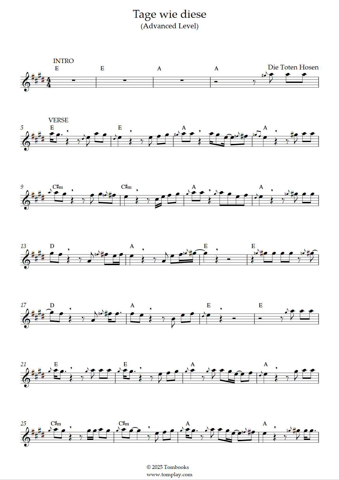 Téléchargez la partition Saxophone Tage wie diese (niveau difficile, sax ténor) de Die Tot…