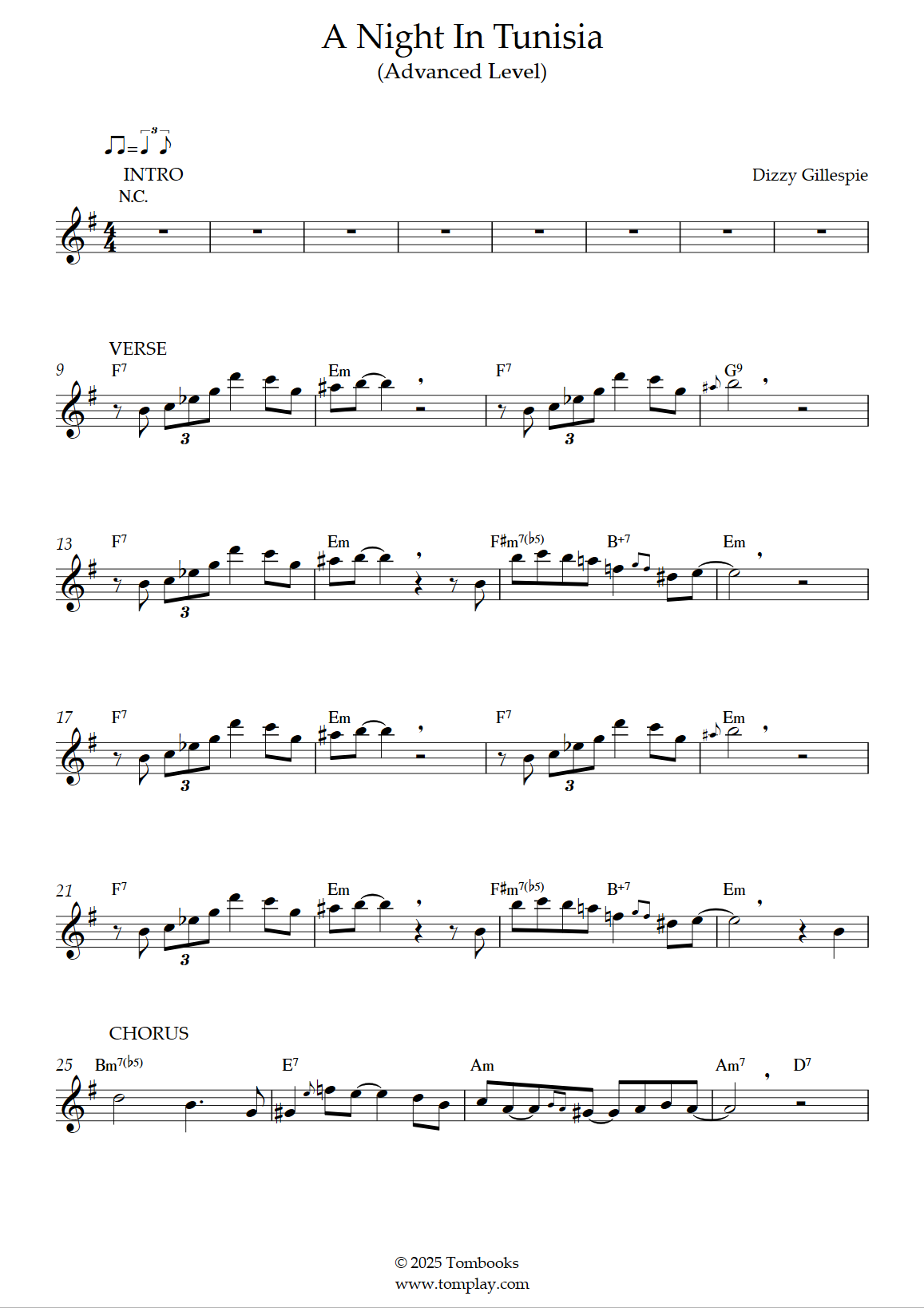Dizzy Gillespie : A Night in Tunisia (niveau difficile, sax soprano)