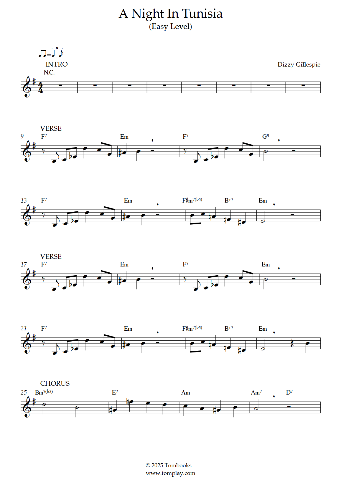 Téléchargez la partition Flûte A Night in Tunisia (niveau facile) de Dizzy Gillespie. Part…