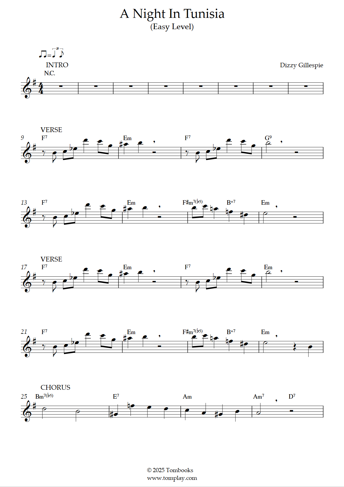 Téléchargez la partition Saxophone A Night in Tunisia (niveau facile, sax ténor) de Dizzy …
