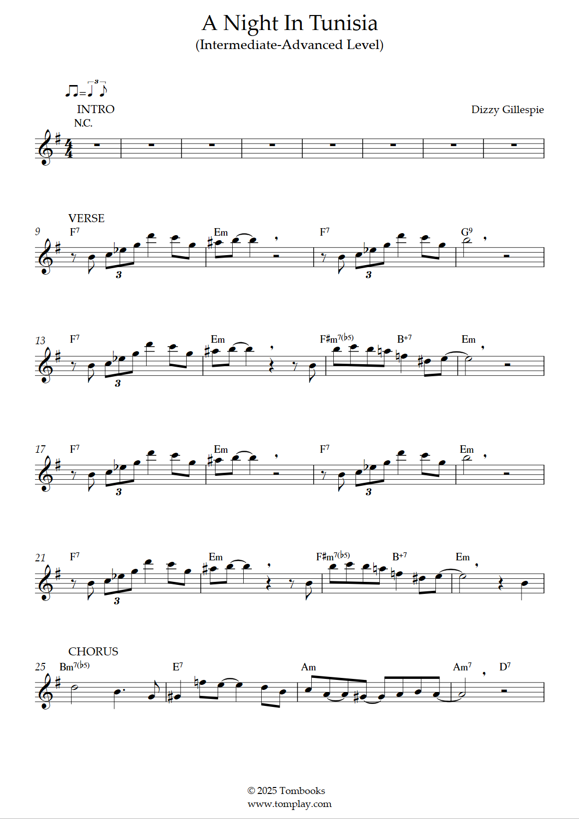 Dizzy Gillespie : A Night in Tunisia (niveau facile, sax ténor)