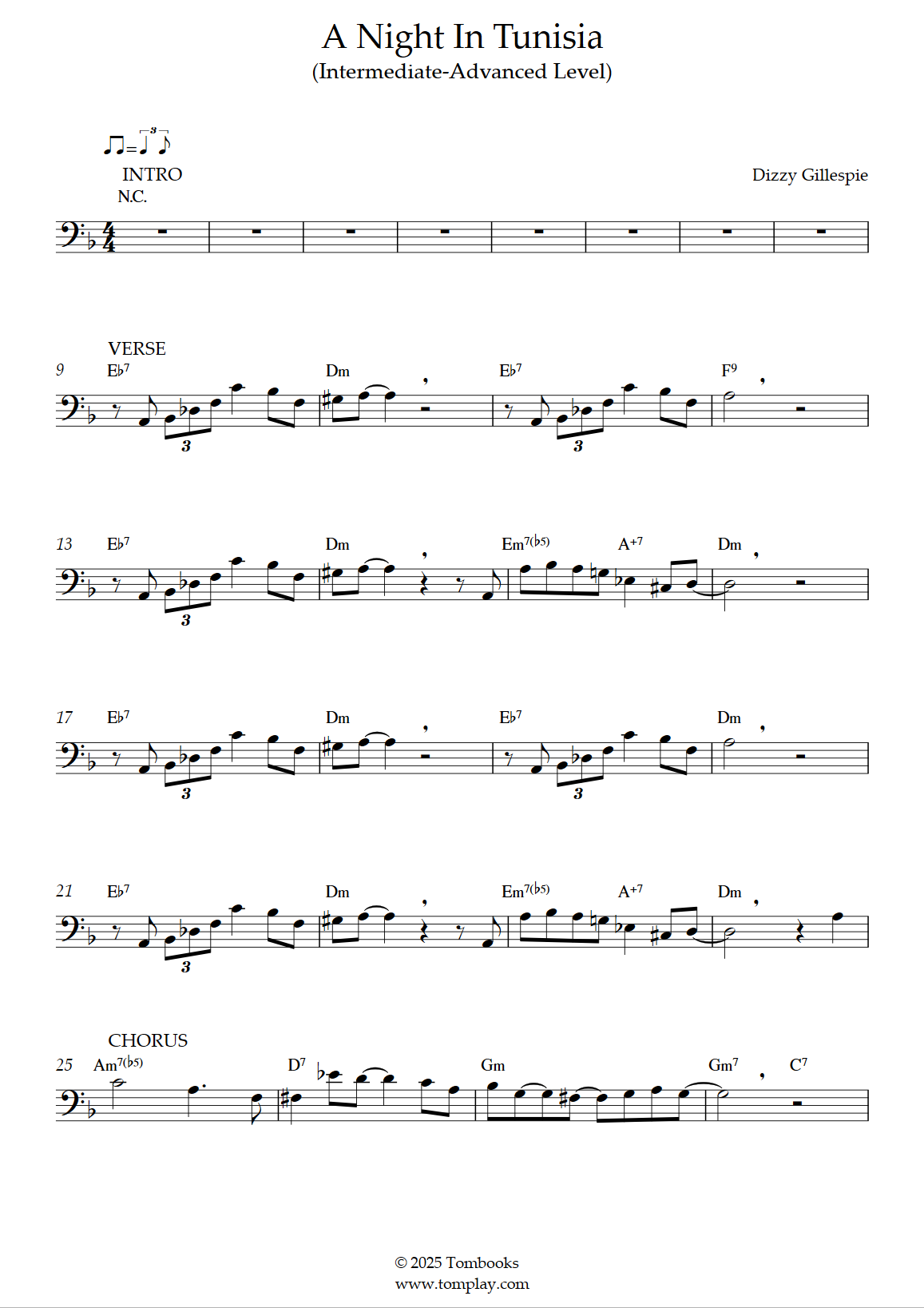 Téléchargez la partition Trombone A Night in Tunisia (niveau intermédiaire/difficile) de D…