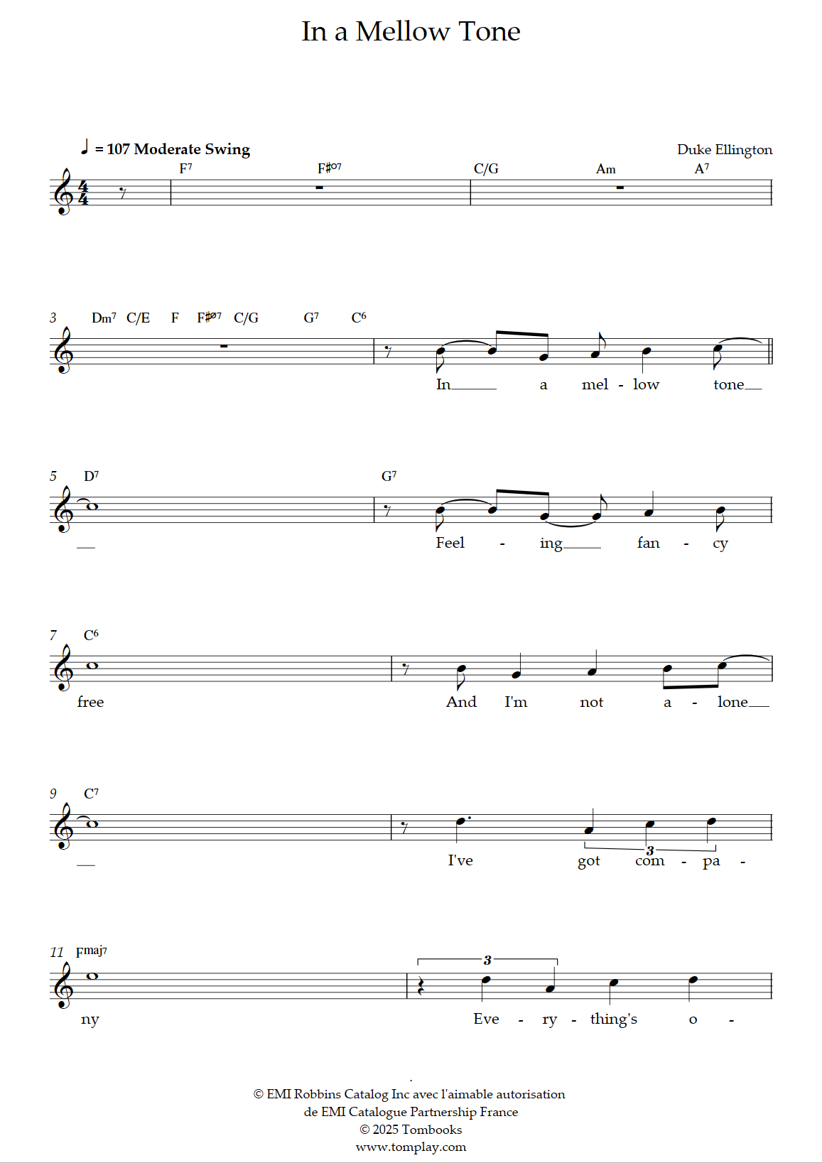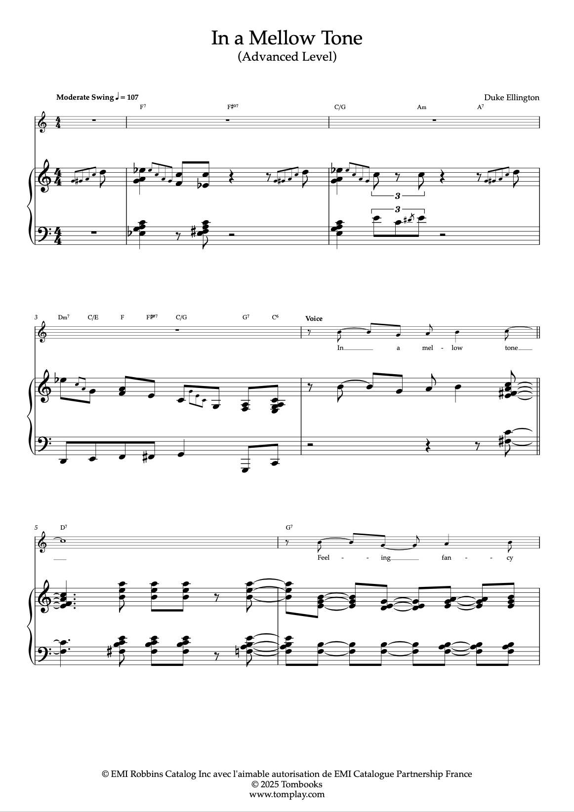 Téléchargez la partition Chant In a Mellow Tone de Duke Ellington. Partition pour Avec acc…