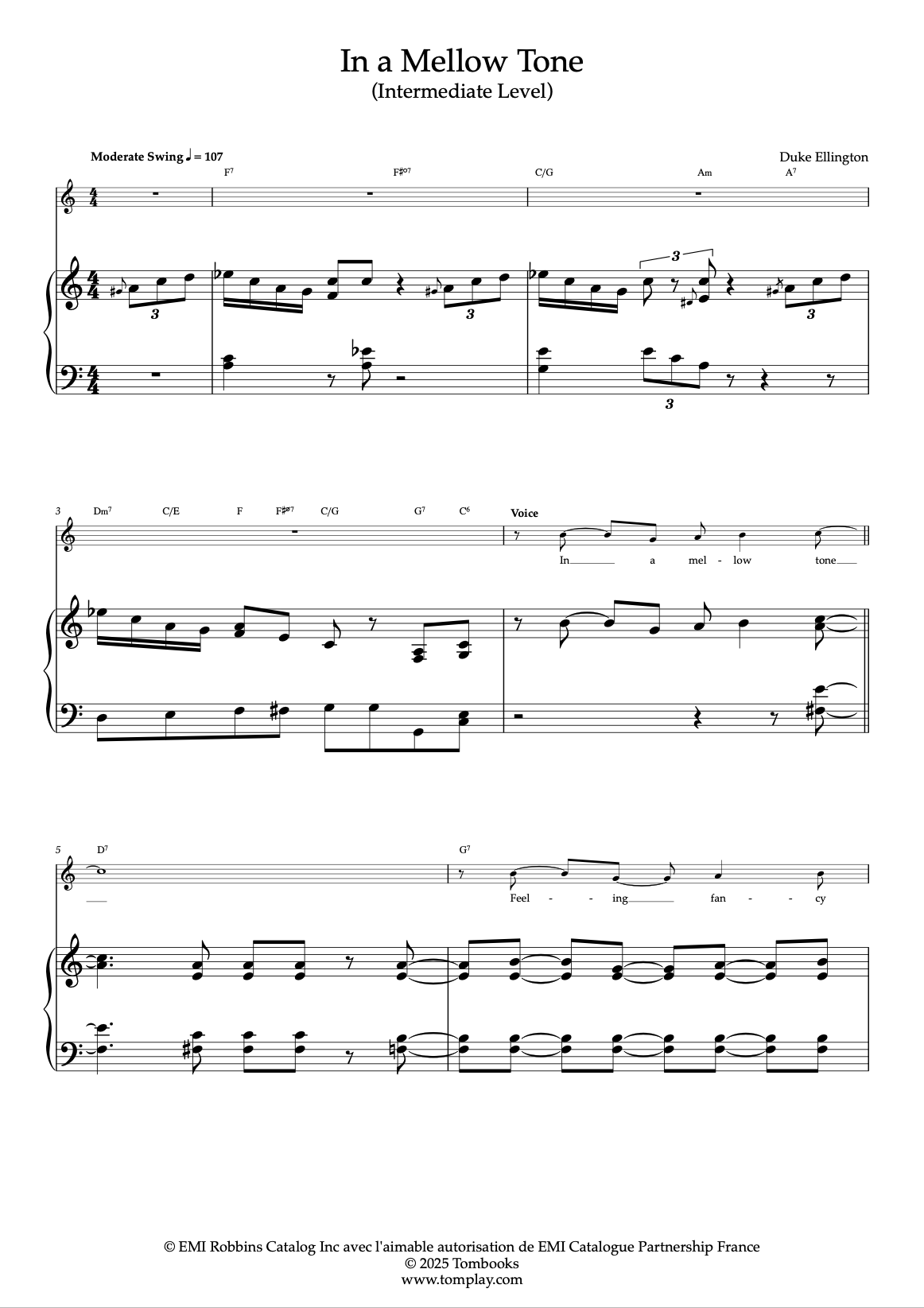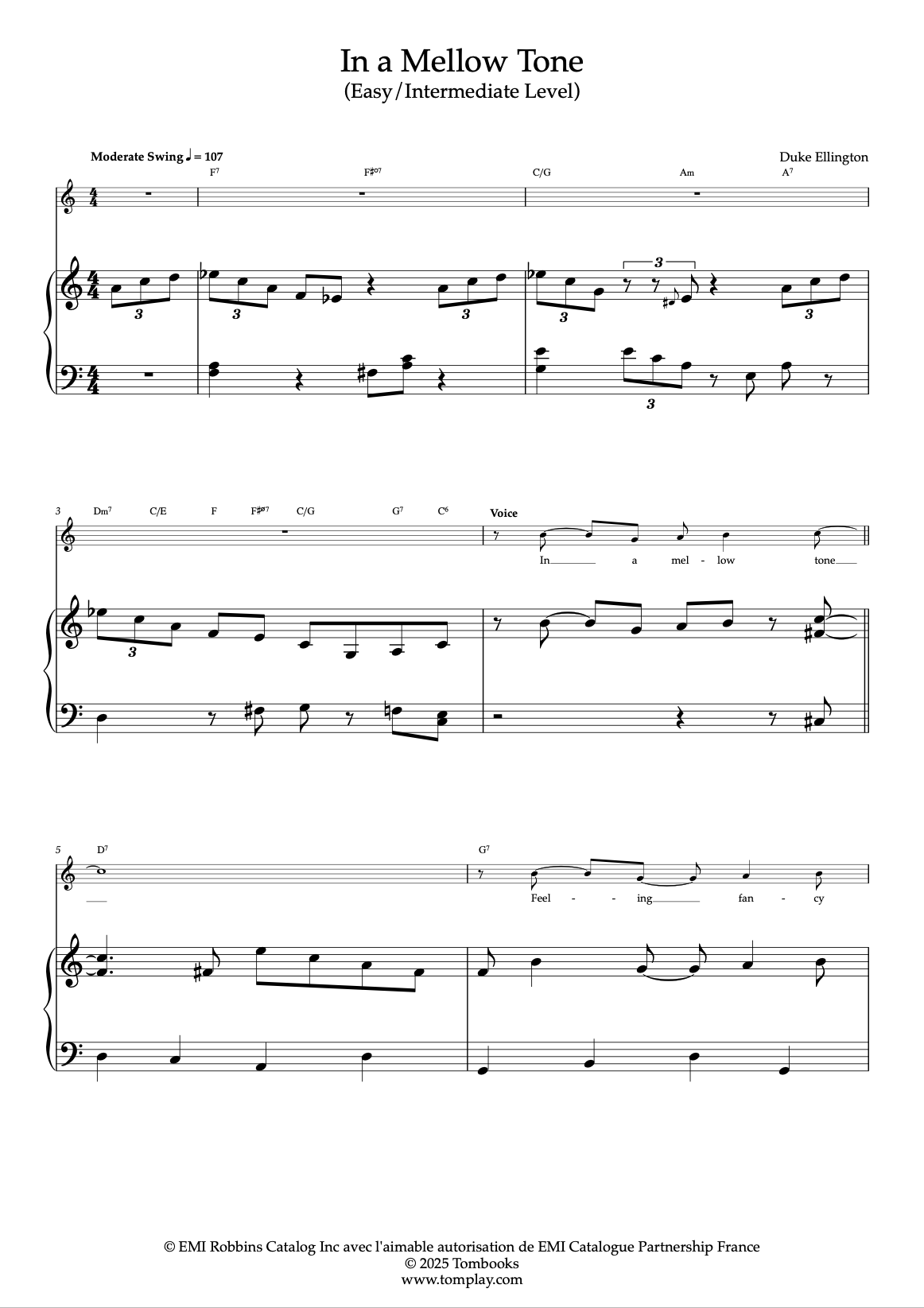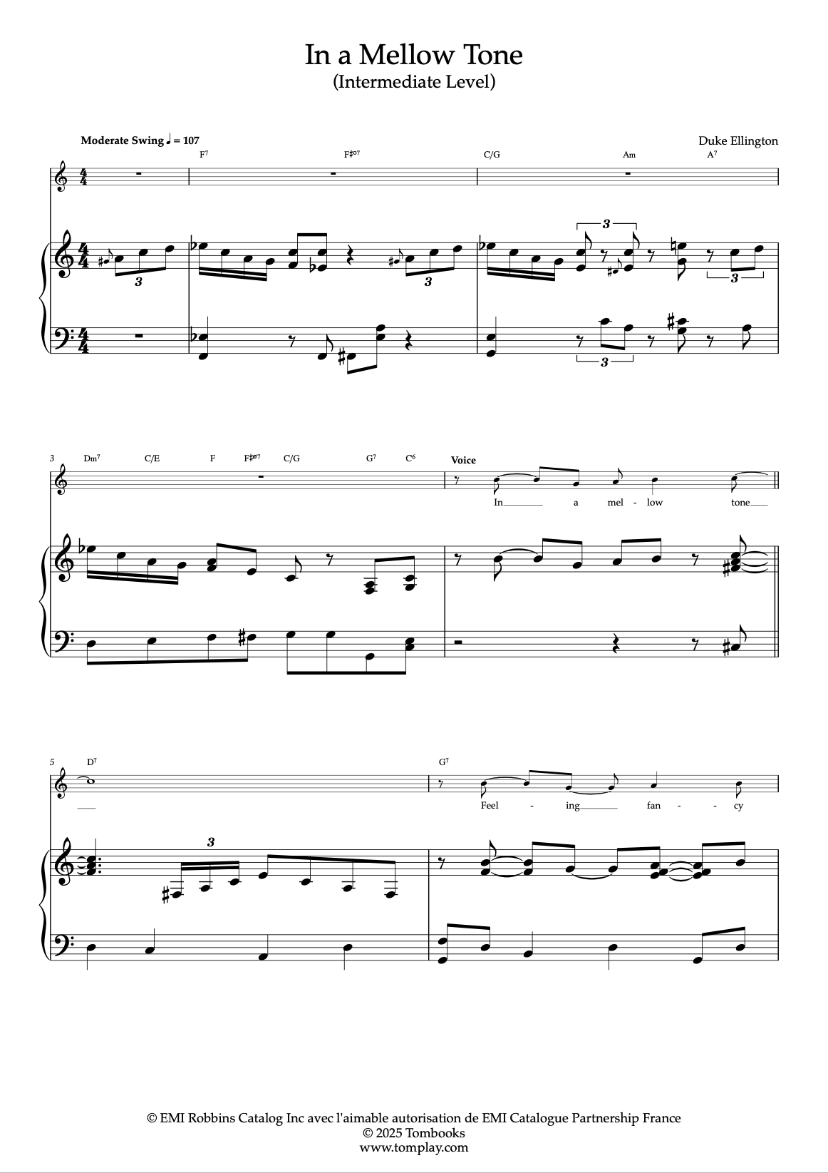 Téléchargez la partition Piano In a Mellow Tone (niveau intermédiaire, piano solo) de Duke…