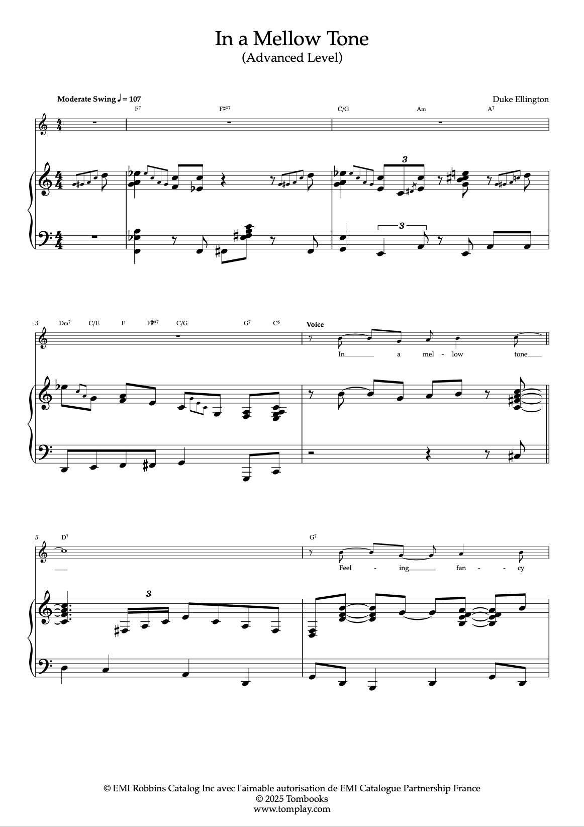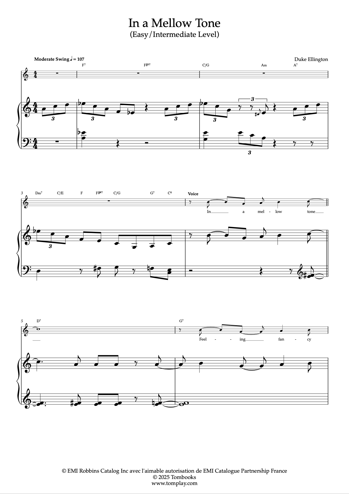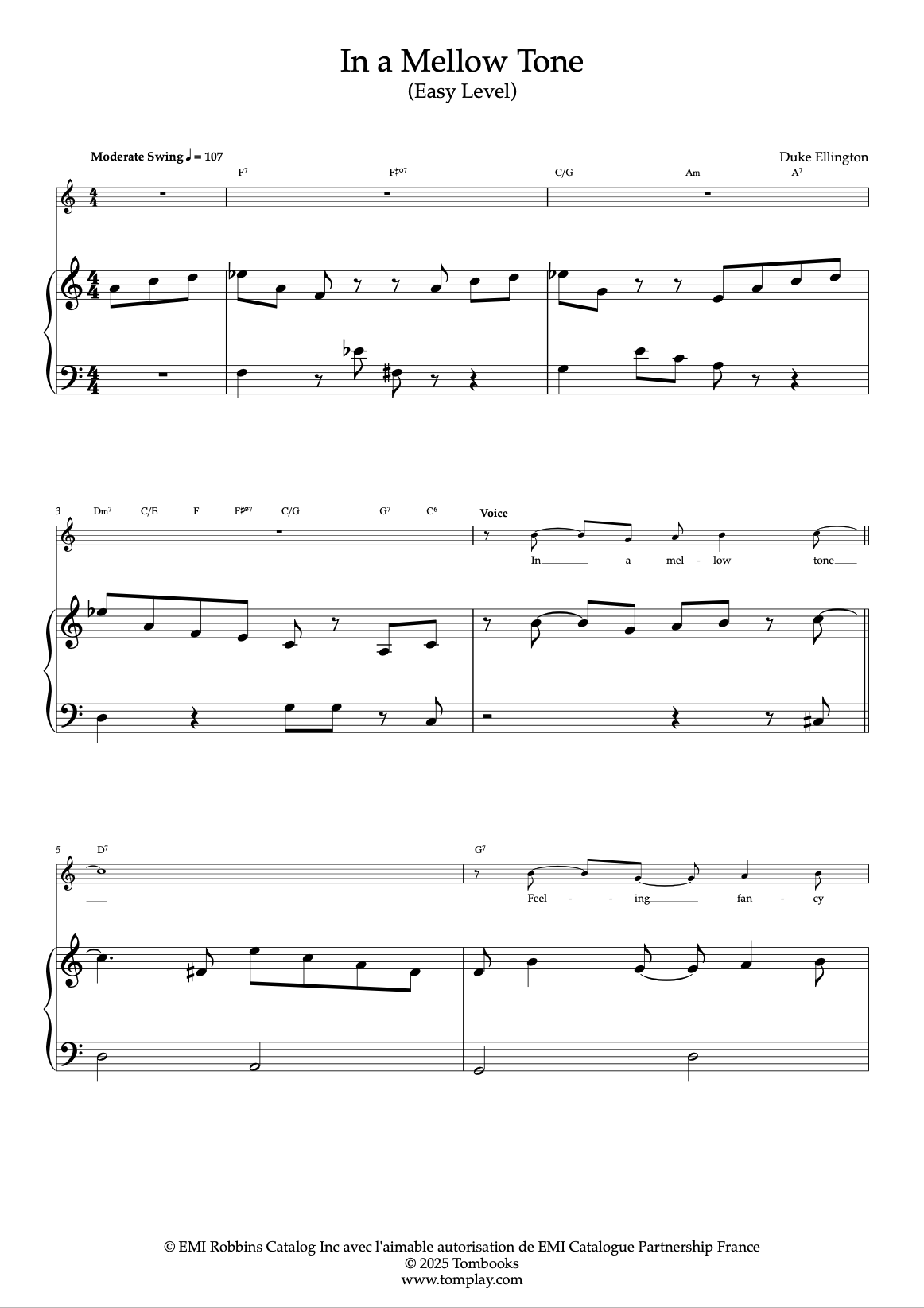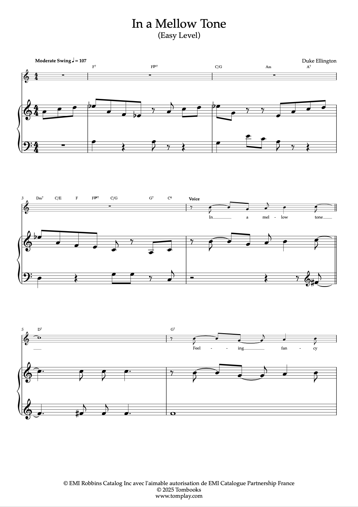 Téléchargez la partition Piano In a Mellow Tone (niveau intermédiaire, piano solo) de Duke…
