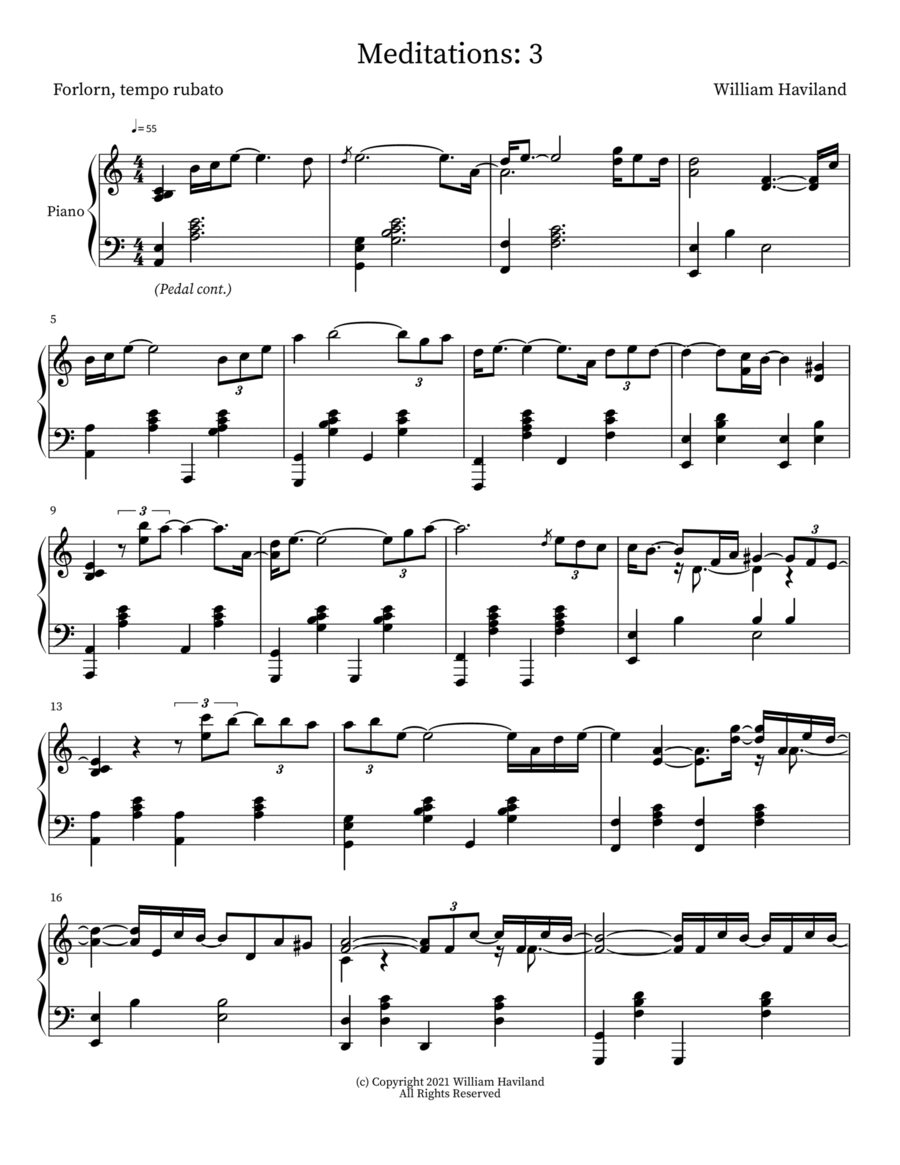 Choral Choir (SSAA) - Digital Download SKU: A0.1000889 Composed by Charles Griffin. 20th Century,A Cappella,Contemporary,Sacred,Spiritual. Octavo. 11 pages. Coriolis Press #6272813. Published by Coriolis Press (A0.1000889). From the hypnotic Agnus Dei and transcendent Beatus Vir to the joyous Jubilate Deo, immerse yourself in the beauty of Charles Griffin's 3 Meditations, an original a cappella SSAA choral piece that will transport you to a state of deep contemplation. Premiered and recorded by the Piedmont Choirs under the direction of Bob Geary, it's perfect for high-school-age women's ensembles and adult groups alike. Featuring three short movements set in Latin, each can be performed individually or as a group, giving you the flexibility to customize your performance. Also recorded by the Peninsula Women's Chorus under the direction of Martin Benvenuto, you won't want to miss adding this future classic to your choral repertoire.