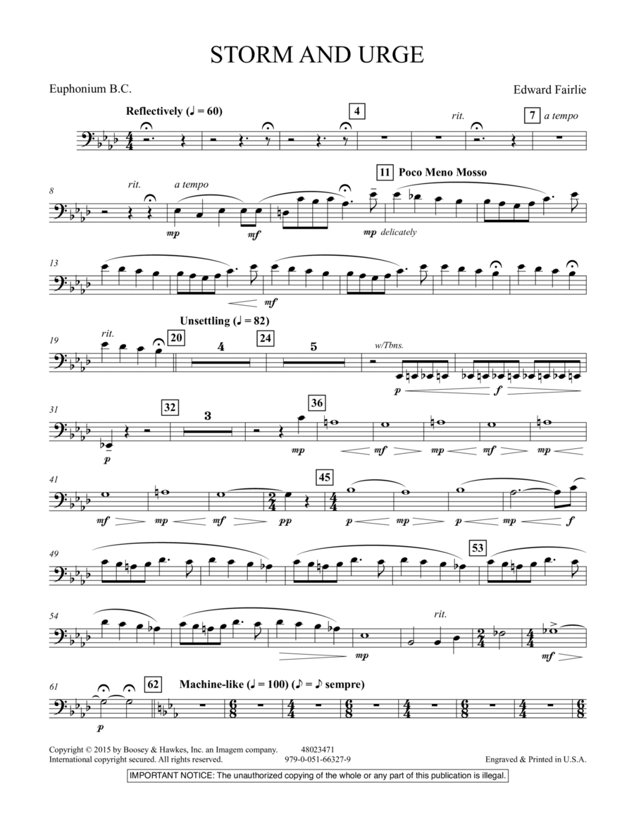 String Orchestra - Level 5 - Digital Download SKU: A0.942953 Composed by Geoffrey Peterson. Contemporary. Score and parts. 43 pages. Geoffrey Peterson #4267231. Published by Geoffrey Peterson (A0.942953). Link to complete recording: https://soundcloud.com/geoffrey-peterson/sets/the-edmund-fitzgerald-concerto On November 9th, 1975, the S.S. Edmund Fitzgerald left port in Superior, Wisconsin. The 729-foot-long iron ore carrier, loaded with 26 thousand tons of taconite pellets for the auto industry, was bound for Detroit. Earlier that day, the weather service had issued a gale warning. This was not unusual, considering that gale storms are typical during November on Lake Superior. The Fitzgerald’s Captain, Ernest McSorley, and her 29-member crew headed northeast unaware of the maelstrom they would soon encounter. At around 2 a.m., Bernie Cooper, captain of the Arthur M. Andersen, another freighter which was following a few miles behind the Fitzgerald, radioed Captain McSorley to consult with him about the worsening storm. They had both decided to take a more northerly route along the Canadian shore, which they hoped would provide some shelter from the violent gale winds and waves. The Fitzgerald’s long-range radar stopped working the following day and was needed in order to avoid Six-Fathom Shoal, a shallow area of Lake Superior that could rupture the ship’s hull. McSorley soon radioed the Anderson to report that the Fitzgerald had sustained some topside damage...a fence rail down, two vents lost or damaged, and a starboard list. A list meant that the Fitzgerald was taking on too much water and was causing it to lean to one side. The short-range radar also stopped working, and the radio direction beacon from nearby Whitefish Point vanished. This would make it impossible for the Fitzgerald to reach the lee waters of Whitefish Bay and escape the 80 mph winds churning 20 to 30-foot waves. At 7:10 p.m. that night, First Mate Morgan Clark of the Andersen radioed the Fitzgerald to see how they were doing. Captain McSorley replied, We’re holding our own. This was the last contact anyone would have with the Fitzgerald. Shortly thereafter, the Edmund Fitzgerald disappeared from the Anderson’s radar screen. All 29 of her crew were lost on November 10th, 1975. The Edmund Fitzgerald chronicles the tragic final voyage of the well-known shipwreck in 4 movements; Embarkment, The Gales, Six-Fathom Shoal (We’re holding our own.) and Entombment-Dirge. The concerto makes use of several musical quotes. The first is Spanish Ladies, an English sea chantey, which appears in both the 1st and 3rd movements. The second is the funeral march theme from the 2nd movement of Beethoven’s 3rd Symphony which is heard in the 4th movement of the concerto. In addition, a chime is rung 29 times during the final bars of the concerto to memorialize the men who lost their lives. The Crew of the S.S. Edmund Fitzgerald: Michael E. Armagost, Frederick J. Beetcher, Thomas D. Bentsen, Edward F. Bindon, Thomas D. Borgeson, Oliver J. Champeau, Nolan S. Church, Ransom E. Cundy, Thomas E. Edwards, Russell G. Haskell, George J. Holl, Bruce L. Hudson, Allen G. Kalmon, Gordon F. MacLellan, Joseph W. Mazes, John H. McCarthy, Ernest M. McSorley, Eugene W. O'Brien, Karl A. Peckol, John J. Poviach, James A. Pratt, Robert C. Rafferty, Paul M. Riippa, John D. Simmons, William J. Spengler, Mark A. Thomas, Ralph G. Walton, David E. Weiss, Blaine H. Wilhelm.