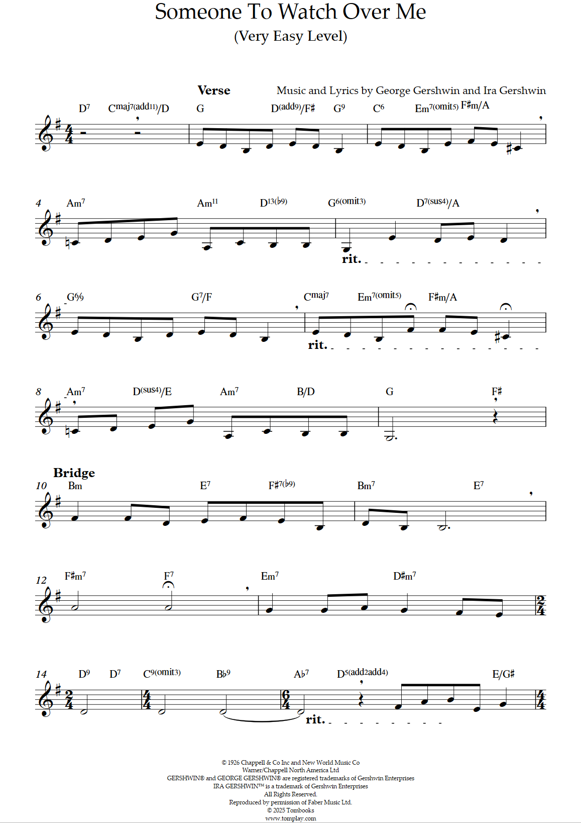 Téléchargez la partition Saxophone Someone To Watch Over Me (niveau facile/intermédiaire, …
