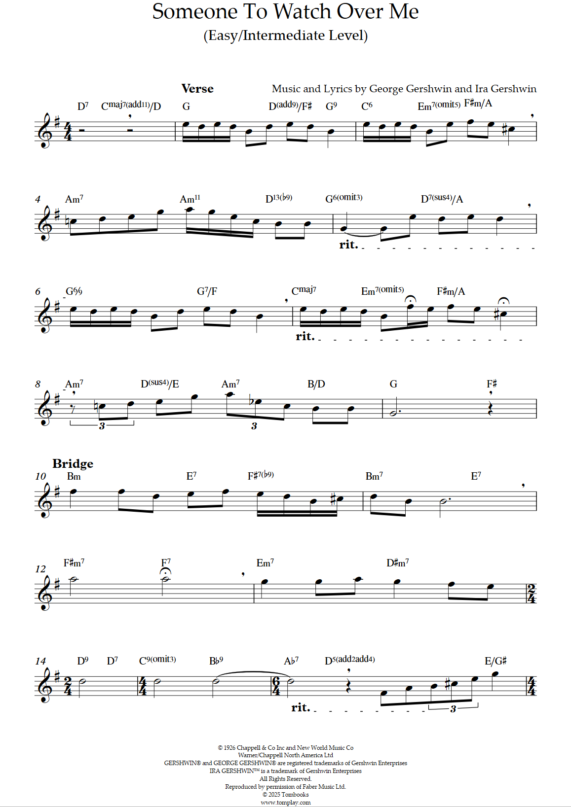 Téléchargez la partition Saxophone Someone To Watch Over Me (niveau facile/intermédiaire, …