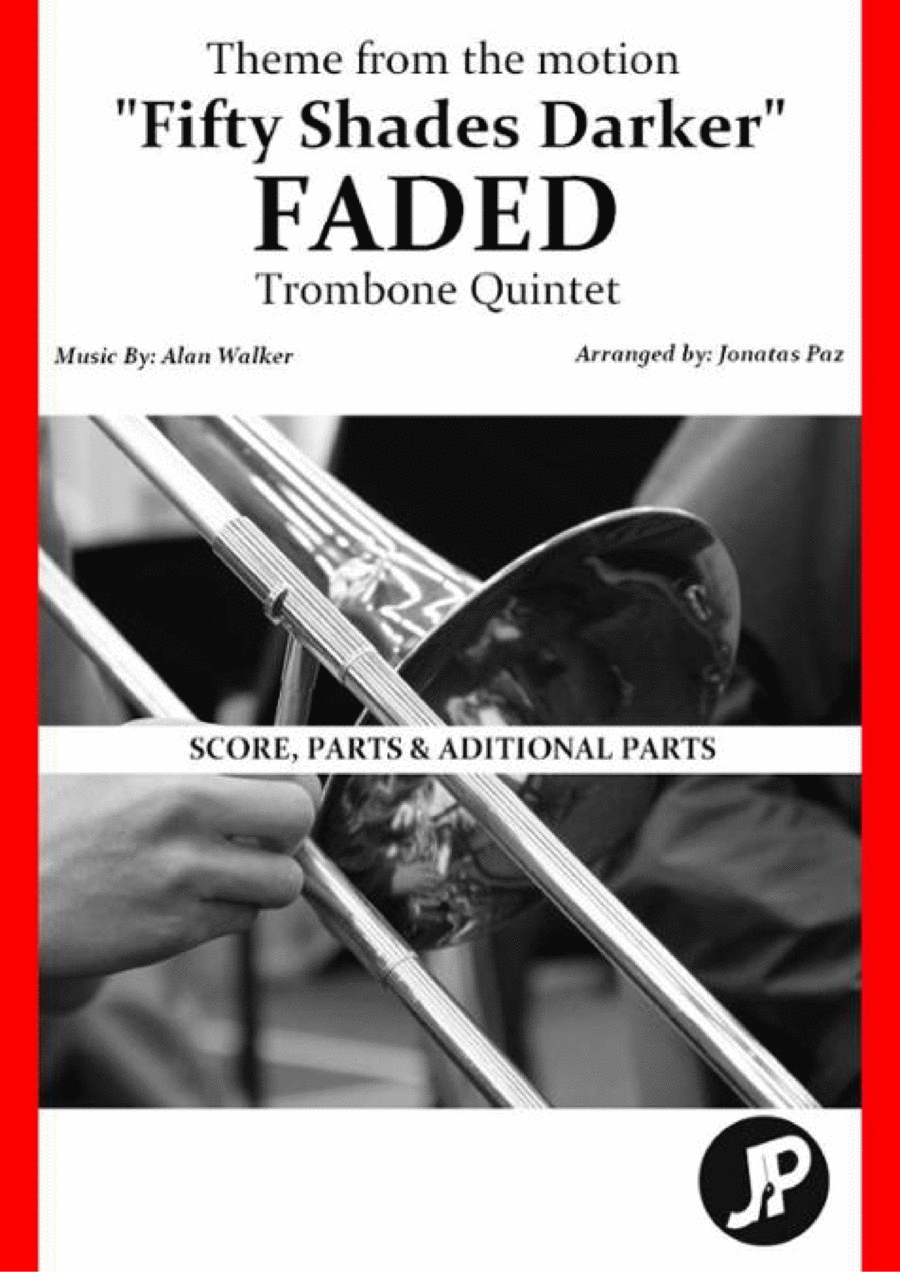 Brass Ensemble,Trombone Quintet Bass Trombone - Level 3 - Digital Download SKU: A0.1049359 By Alan Walker. By Alan Walker, Anders Froen, Gunnar Greve, and Jesper Borgen. Arranged by Jonatas Paz. Film/TV,Pop,Wedding. Score and parts. 22 pages. Jonatas Paz01 #653731. Published by Jonatas Paz01 (A0.1049359). Faded is a song by British-Norwegian record producer and DJ Alan Walker with vocals provided by Norwegian singer Iselin Solheim. The single was originally set to be released on 25 November 2015, but was postponed to 3 December. The song was highly successful, peaking in the top 10 in most of the countries it charted in, and reached the top spot in more than 10 countries.It was also part of the soundtrack of the film fifty shades darker. Here we have an arrangement for Trombone Quintet, which seeks to sound introspective and full of tenderness.