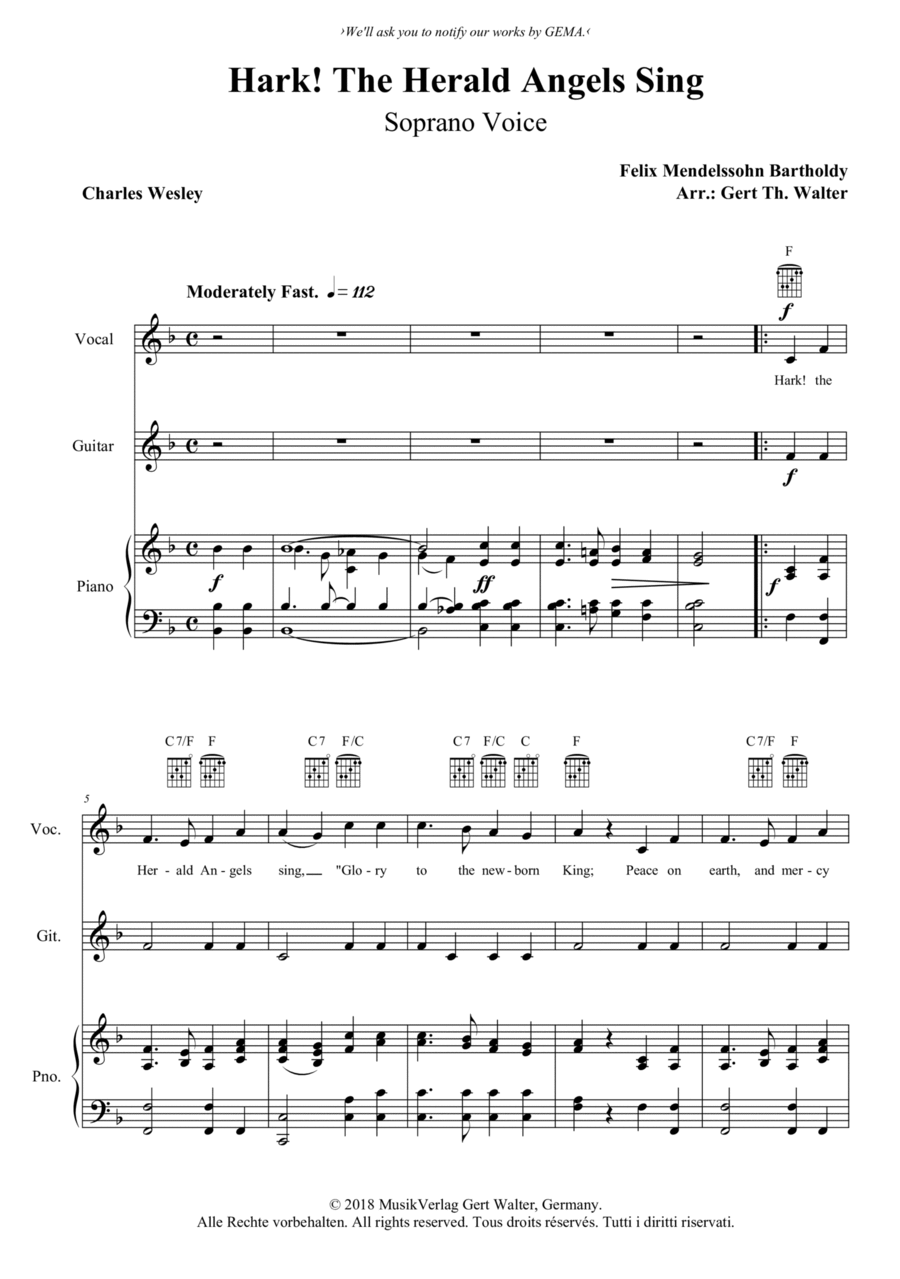 Flute,Piano - Level 2 - Digital Download SKU: A0.695048 Composed by Felix Bartholdy Mendelssohn. Arranged by B. C. Dockery. Christian,Christmas,Concert,Sacred. Score and part. 2 pages. Ben Dockery #6531223. Published by Ben Dockery (A0.695048). Arranged for solo flute with optional piano accompaniment. Great for lessons, recitals, caroling, church services, and Christmas parties.