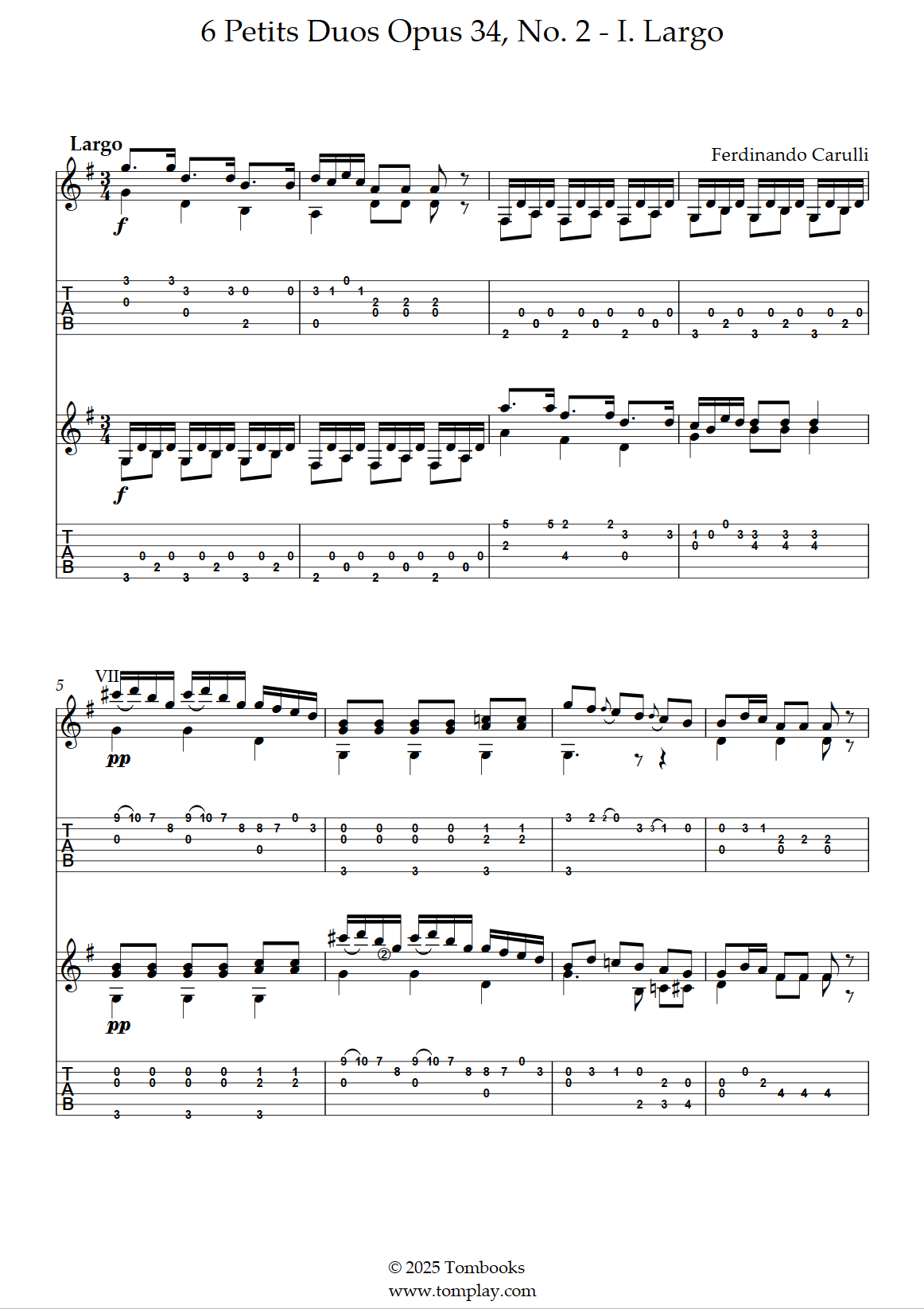 Ferdinando Carulli : 6 Petits Duos Opus 34 - N° 2 I. Largo