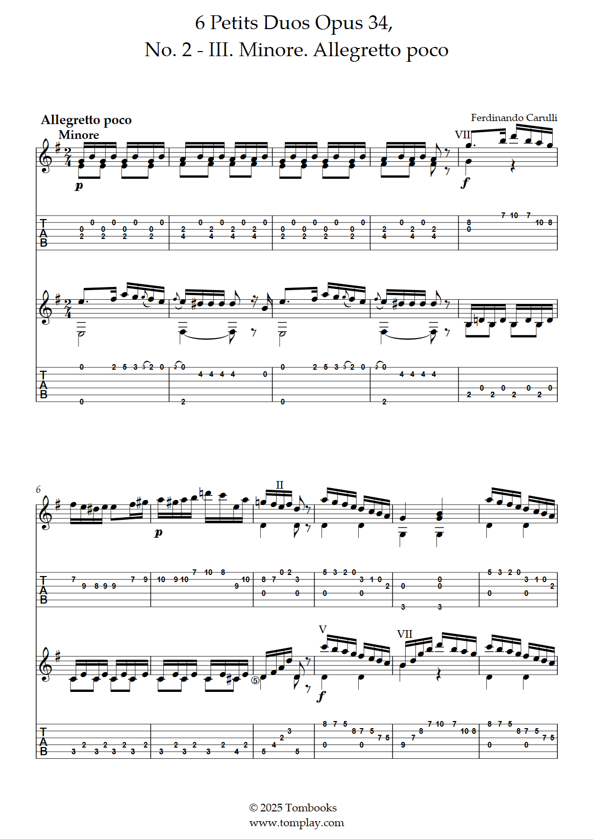Ferdinando Carulli : 6 Petits Duos Opus 34 - N° 2 III. Minore. Allegretto poco