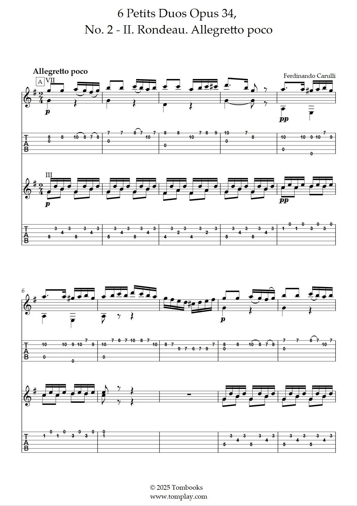 Ferdinando Carulli : 6 Petits Duos Opus 34 - N° 2 II. Rondeau. Allegretto poco