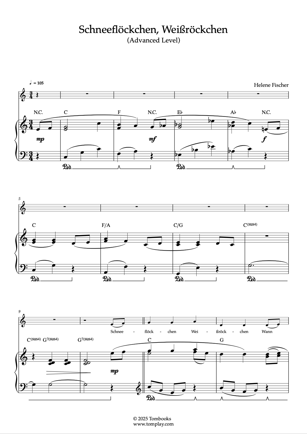 Helene Fischer : Schneeflöckchen, Weißröckchen (niveau difficile, avec orchestre)