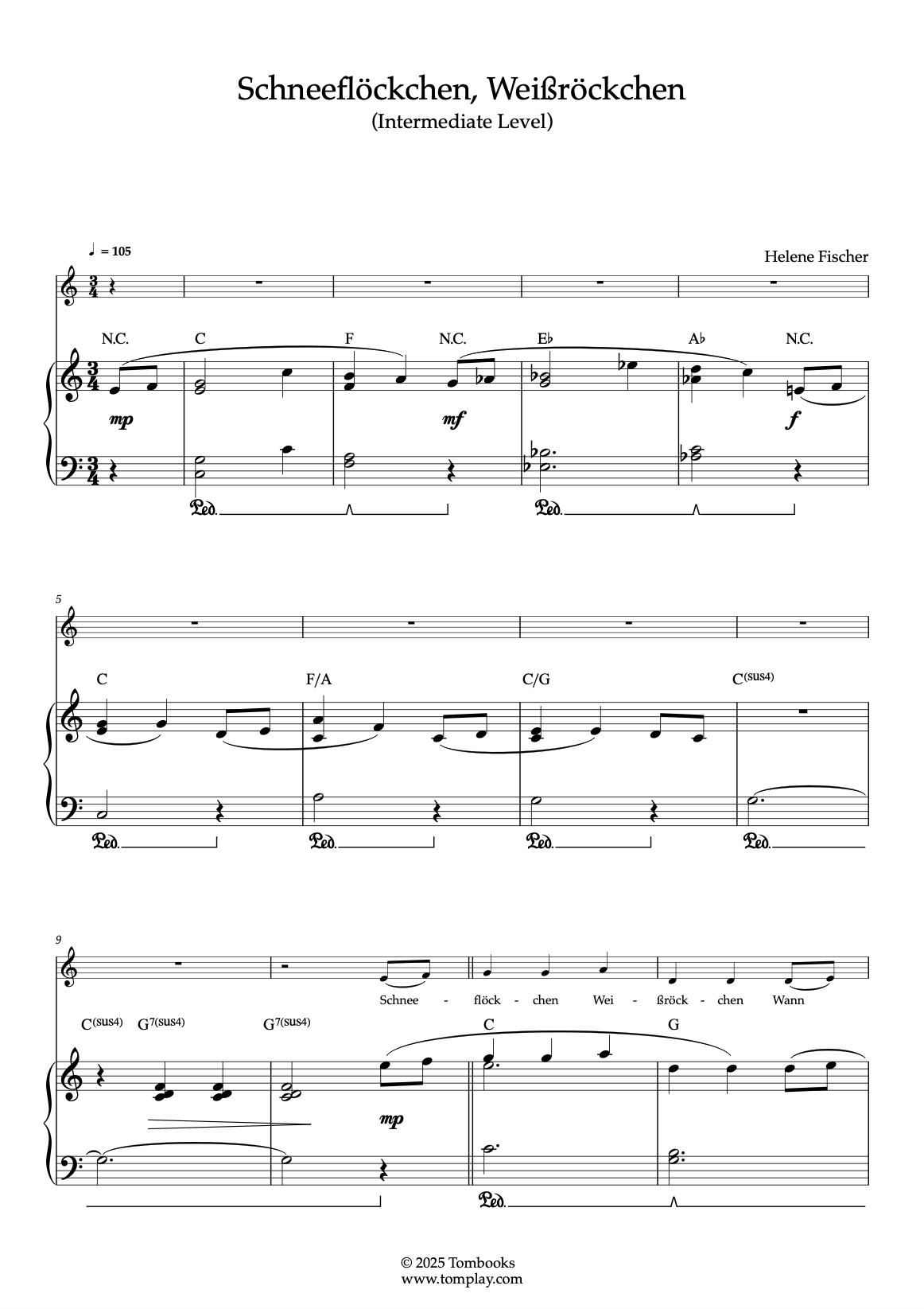 Téléchargez la partition Piano Schneeflöckchen, Weißröckchen (niveau intermédiaire, avec o…
