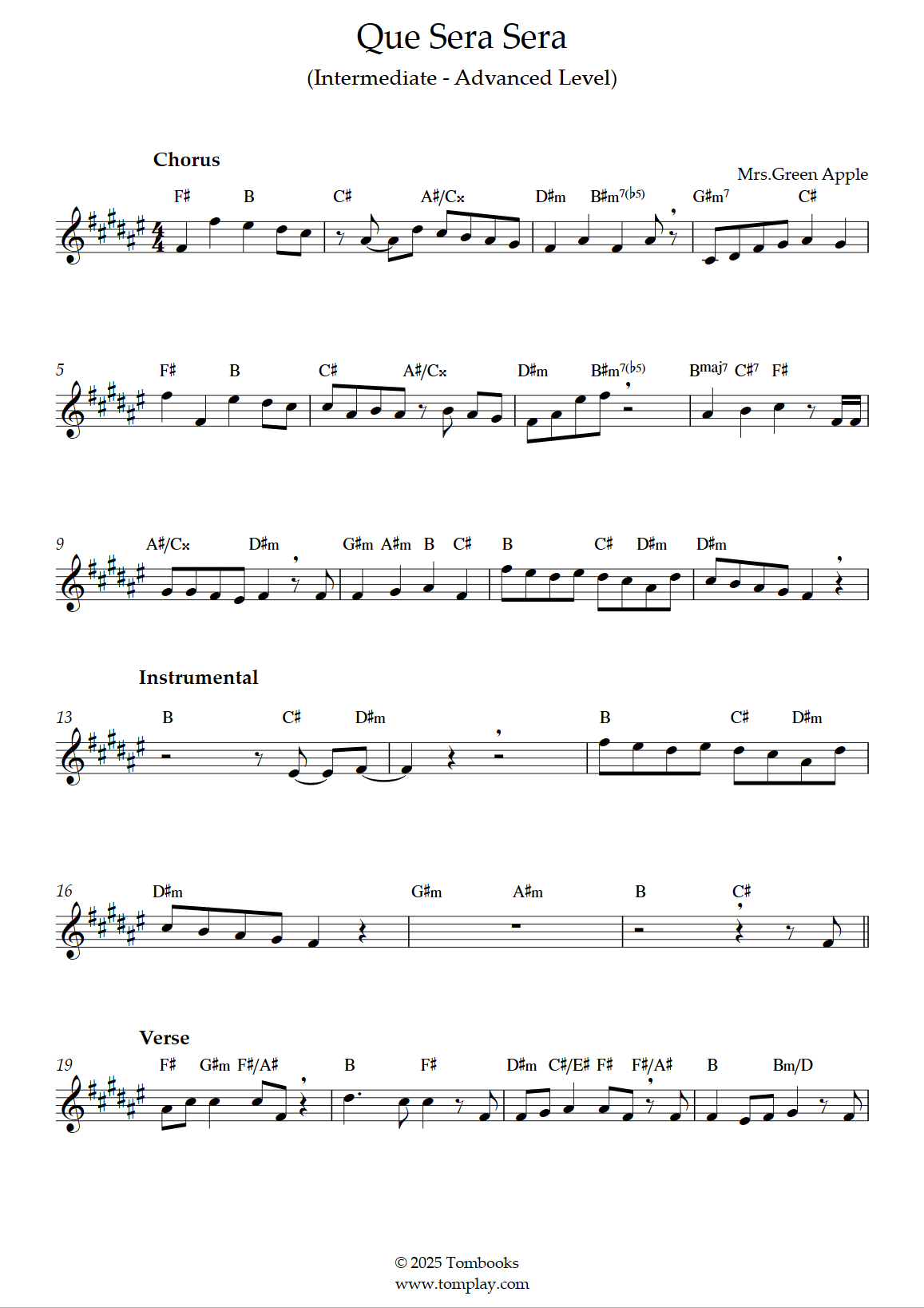 Mrs. Green Apple : Que Sera Sera (niveau intermédiaire/difficile, sax alto)