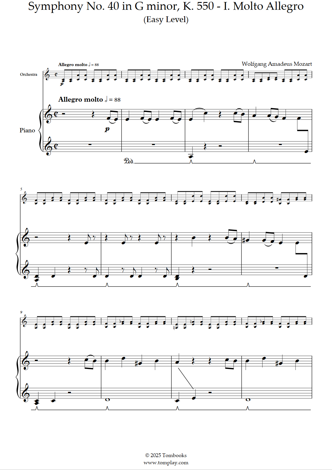 Mozart Wolfgang Amadeus : Symphonie n° 40 en sol mineur, K. 550 - I. Molto Allegro (niveau facile, avec orchestre)