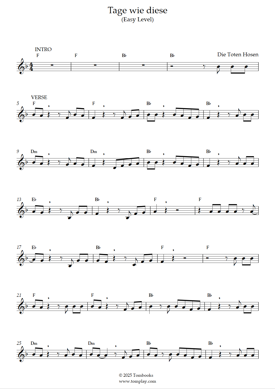 Die Toten Hosen : Tage wie diese (niveau facile, sax soprano)