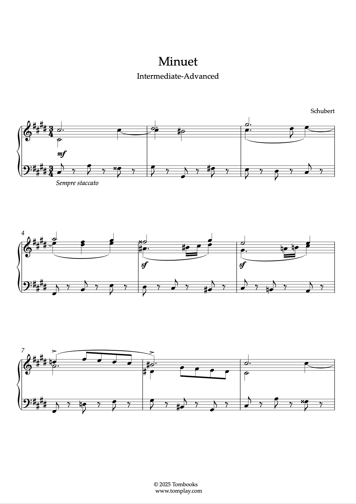 Schubert Franz : Menuet en do dièse mineur, D. 600 (niveau intermédiaire/difficile)
