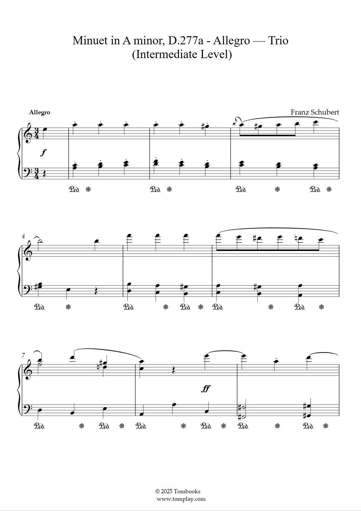 Schubert Franz : Menuet en la mineur, D.277a - Allegro - Trio - Version originale (niveau difficile)