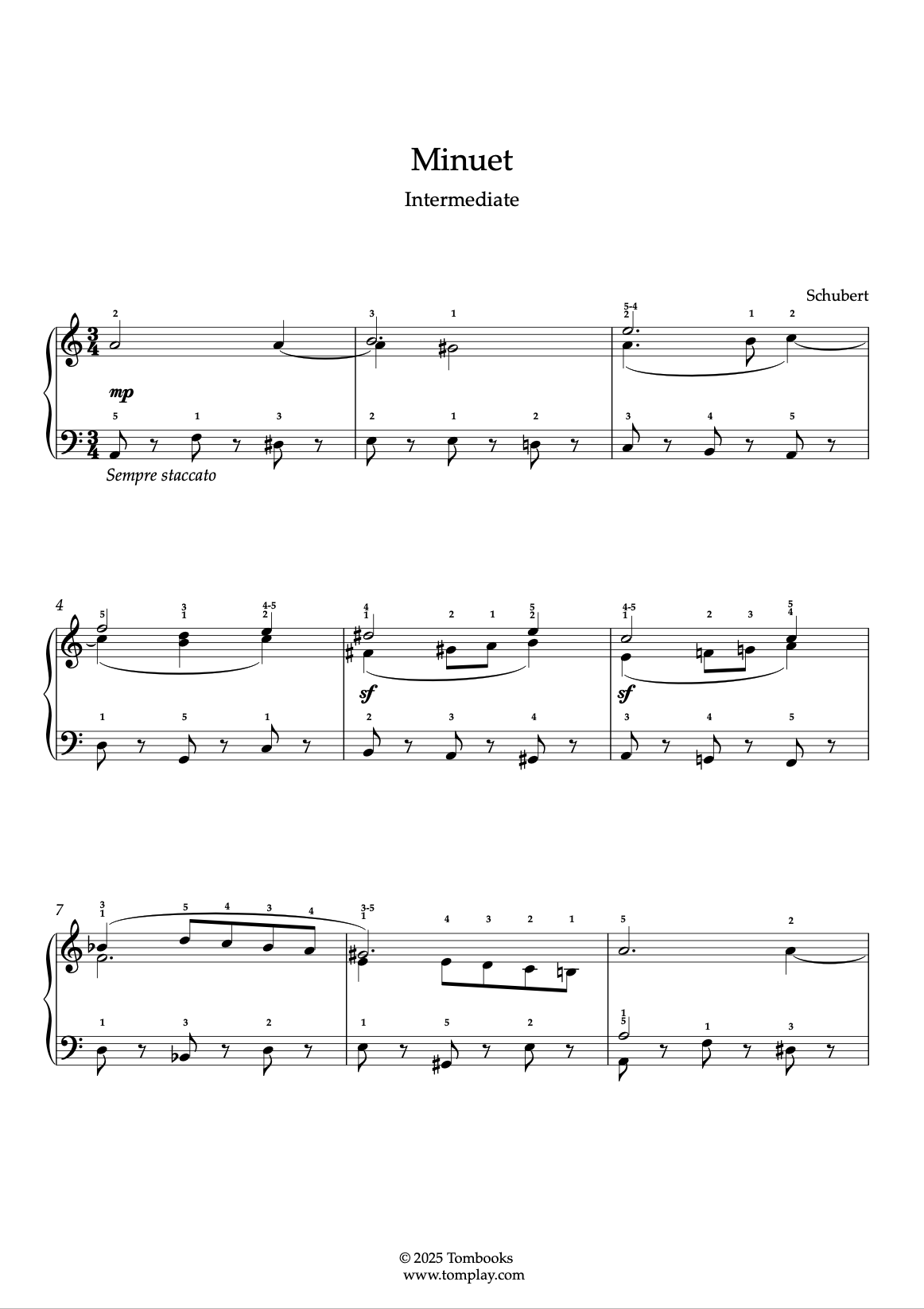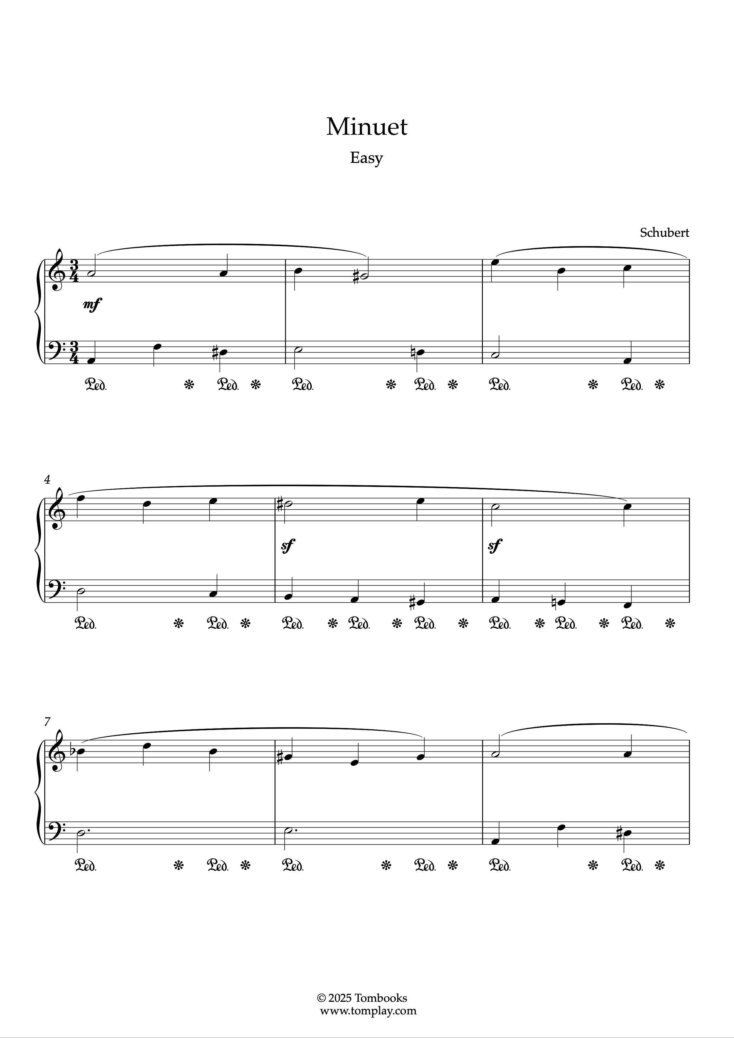 Schubert Franz : Menuet en la mineur, D.277a - Allegro - Trio (niveau facile)