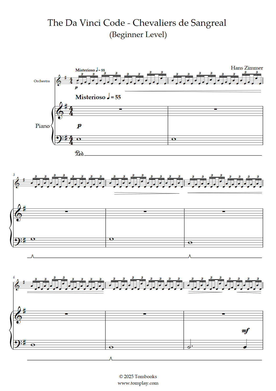 Hans Zimmer : The Da Vinci Code - Chevaliers de Sangreal (niveau débutant)