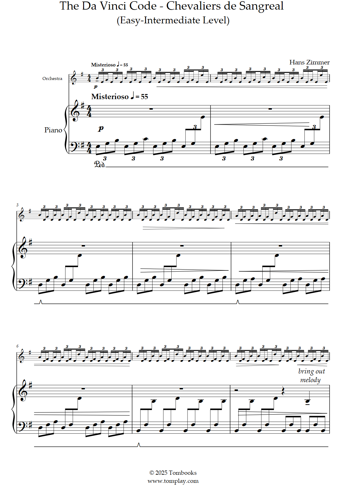 Hans Zimmer : The Da Vinci Code - Chevaliers de Sangreal (niveau facile, avec orchestre)