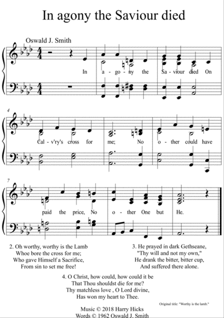 Choral Choir (Unison) - Level 2 - Digital Download SKU: A0.993972 Composed by Harry Hicks. Christian,Gospel,Praise & Worship,Sacred,Spiritual. Octavo. 1 pages. Harry Hicks #4338541. Published by Harry Hicks (A0.993972). New music - by Harry Hicks, (taken from his forthcoming second book of over 400 hymns entitled Praise! 2) to an old hymn that deserves to be better known.The is the first of two alternative tunes.The first book - and other compositions - are also available.