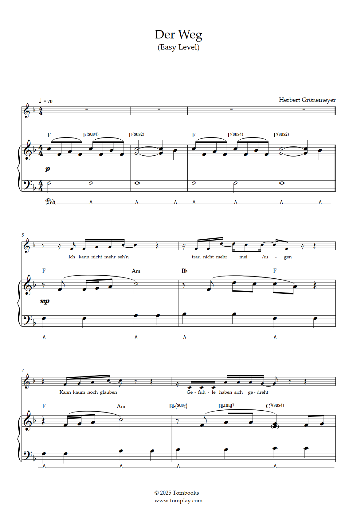 Téléchargez la partition Piano Der Weg (niveau facile, avec orchestre) de Herbert Grönemey…