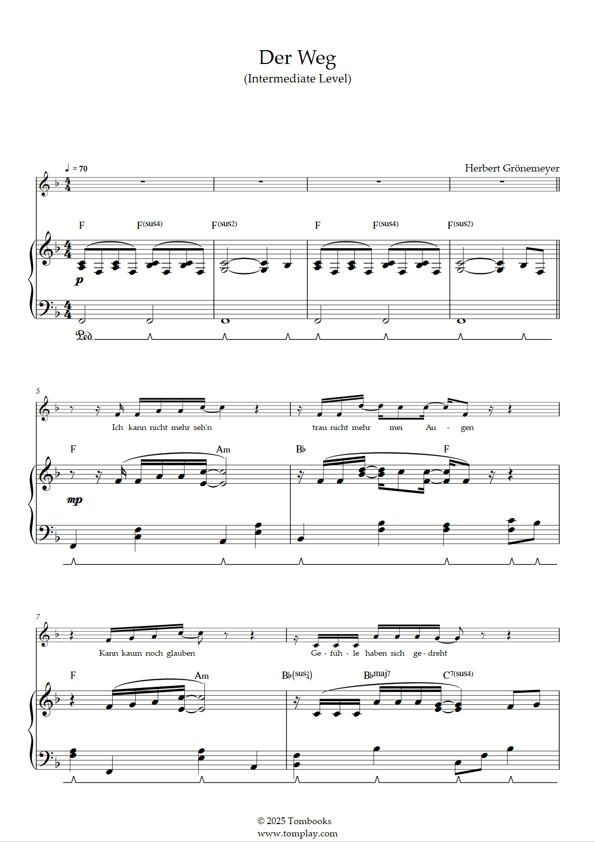 Téléchargez la partition Piano Der Weg (niveau intermédiaire, piano solo) de Herbert Gröne…