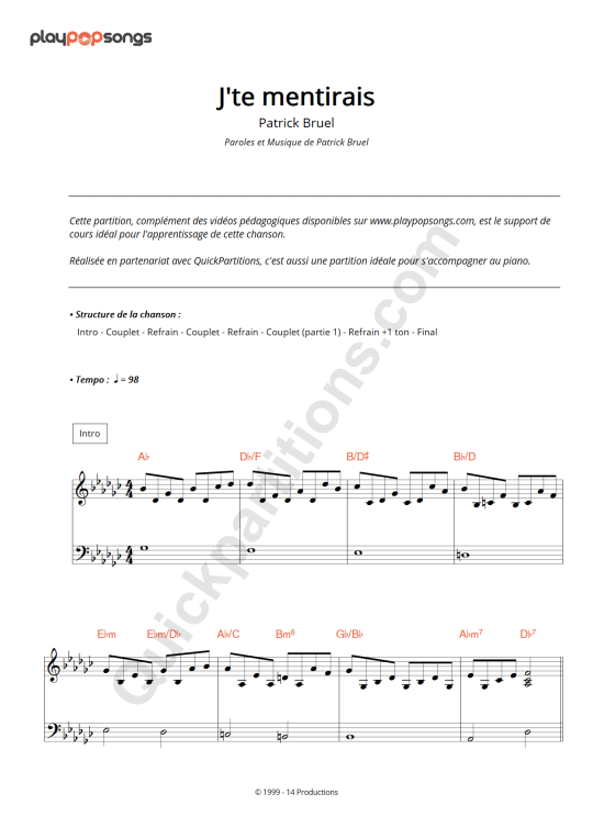 PlayPopSongs: J'te mentirais