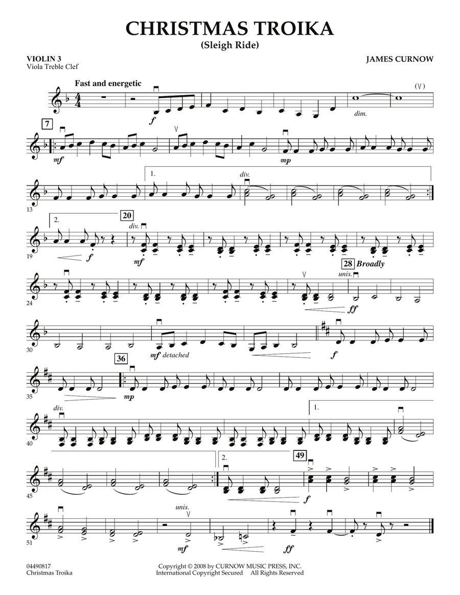 Christmas Troika - Violin 3 (Viola Treble Clef)