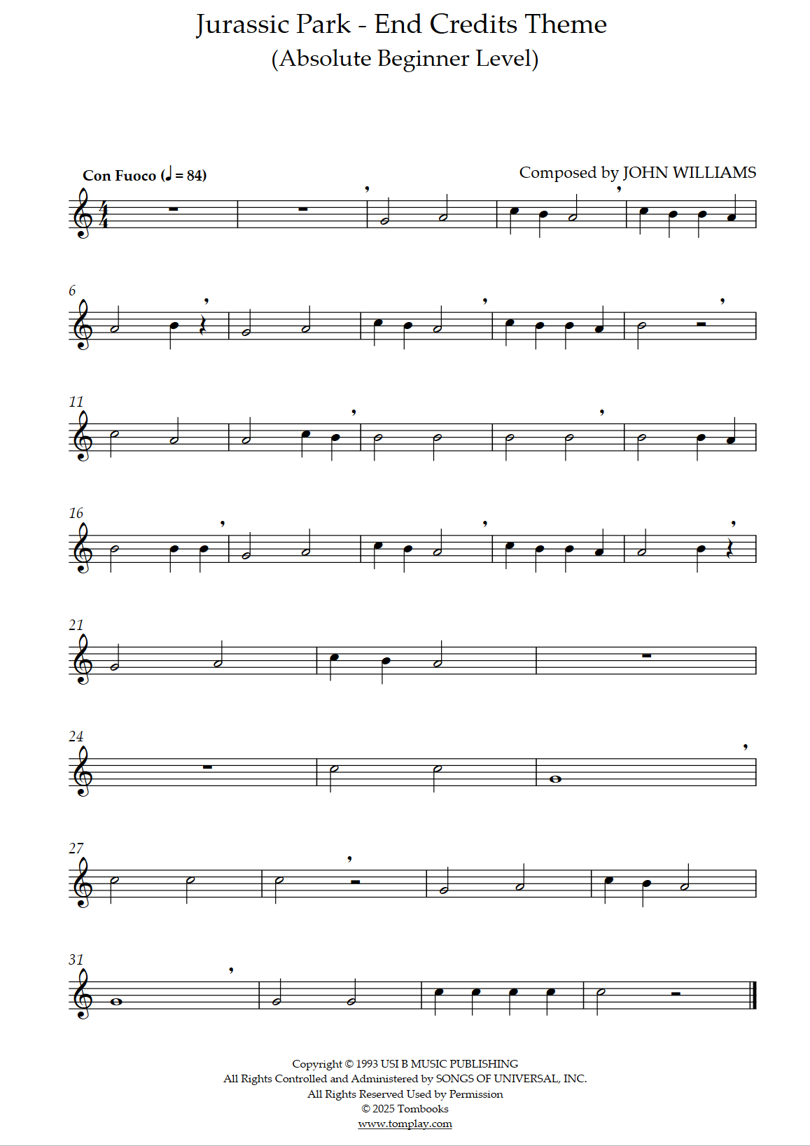 John Williams : Jurassic Park - Thème End Credits (niveau débutant absolu, sax ténor)