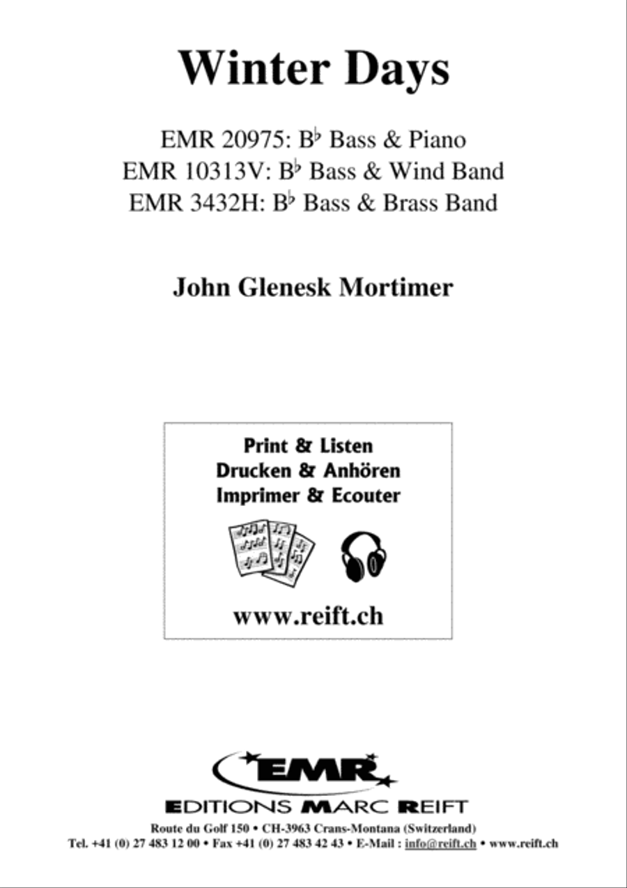Bb Bass & Piano - Grade 2+ - Digital Download SKU: R0.20975 Composed by John G. Mortimer. Bb Bass & Piano. Score and parts. 7 pages. Duration 2'44. Editions Marc Reift - Digital #20975. Published by Editions Marc Reift - Digital (R0.20975).