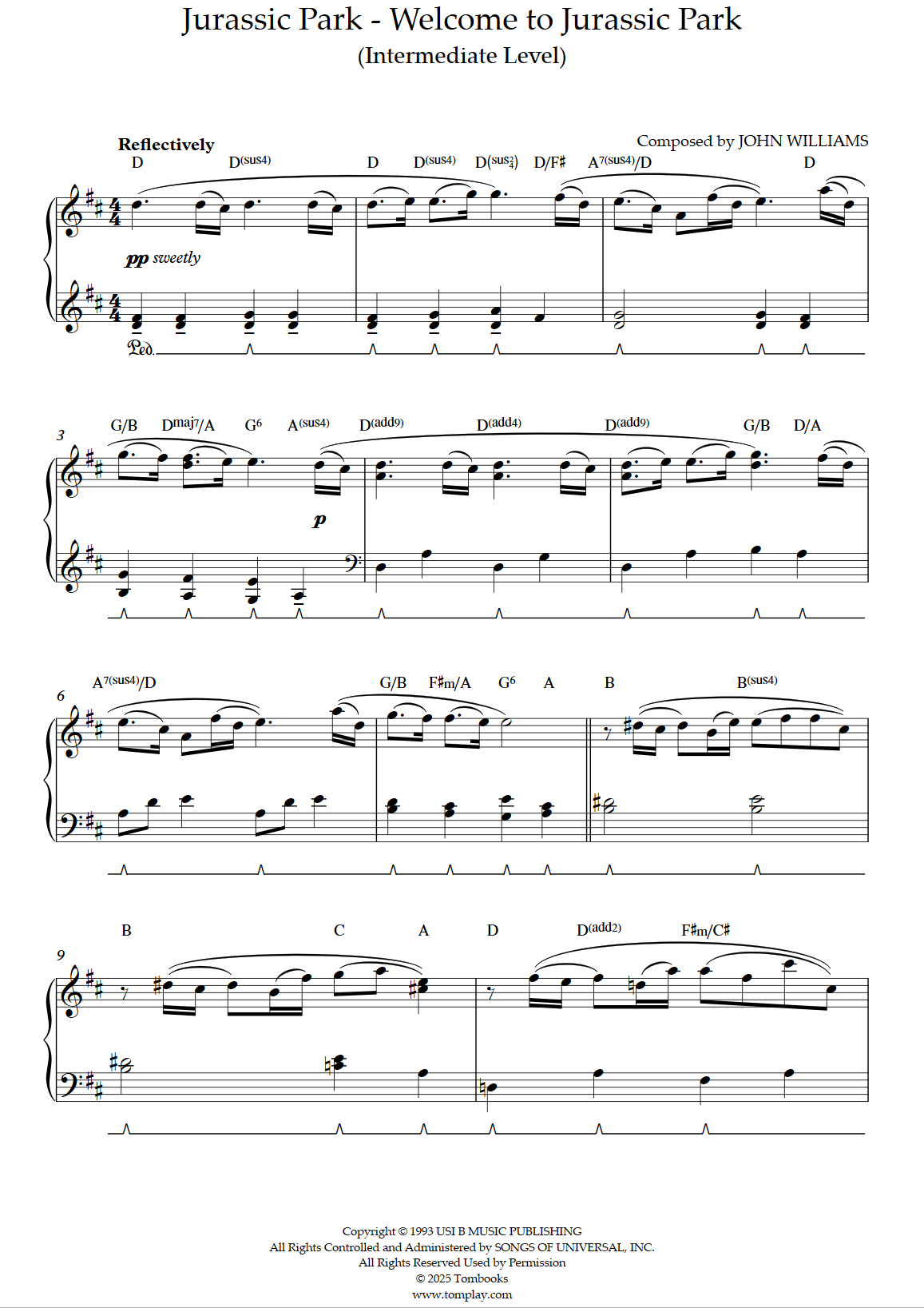 Téléchargez la partition Piano Welcome to Jurassic Park (niveau intermédiaire, avec orches…