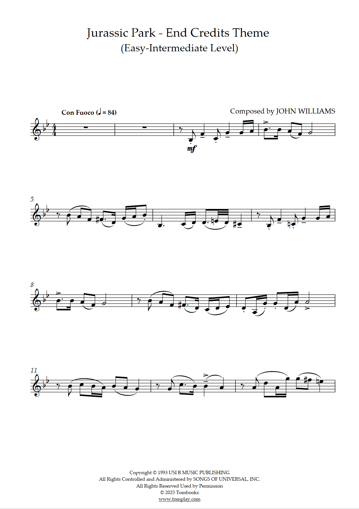 John Williams : Welcome to Jurassic Park (niveau intermédiaire)