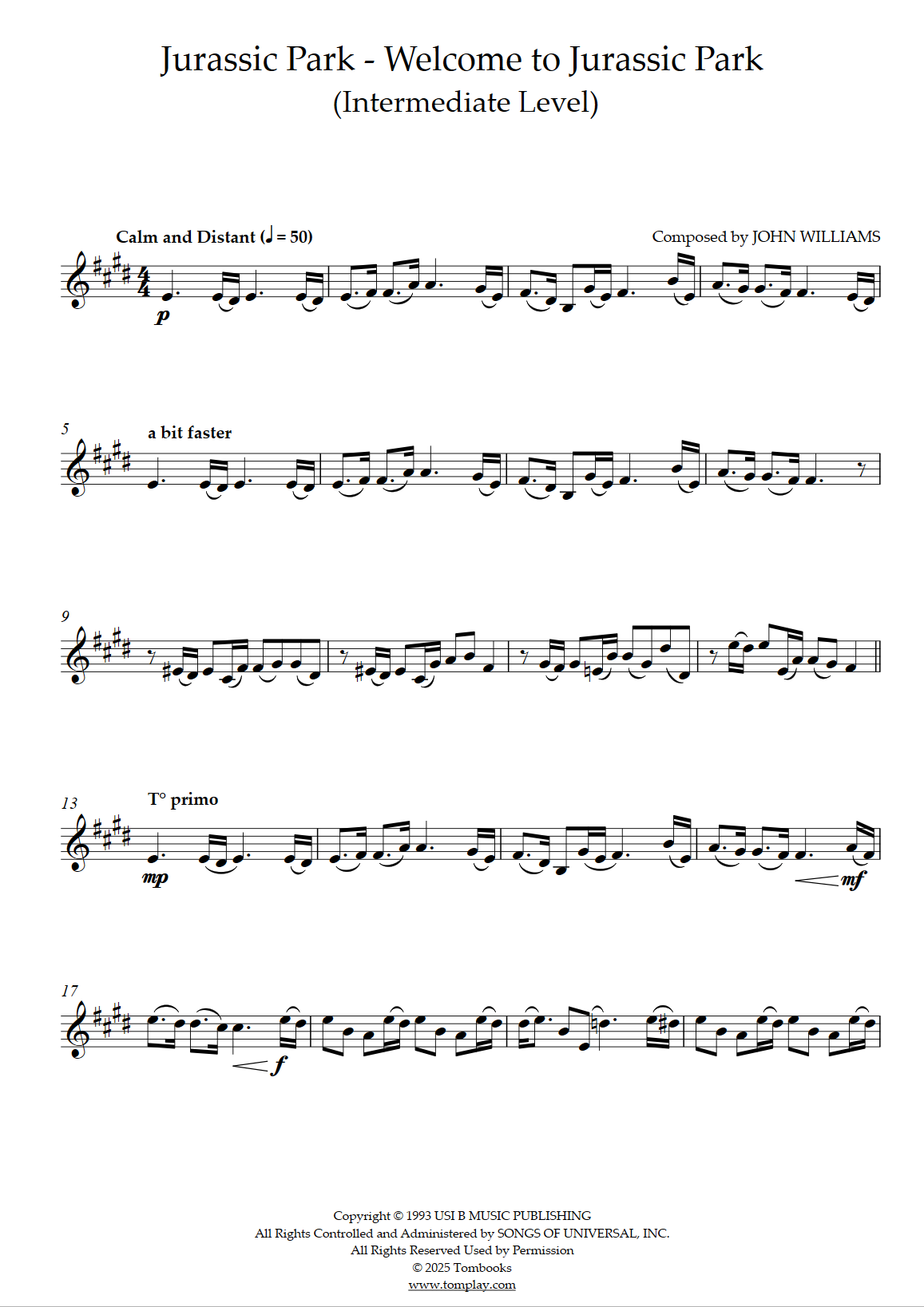 John Williams : Jurassic Park - Thème End Credits (niveau intermédiaire/difficile)