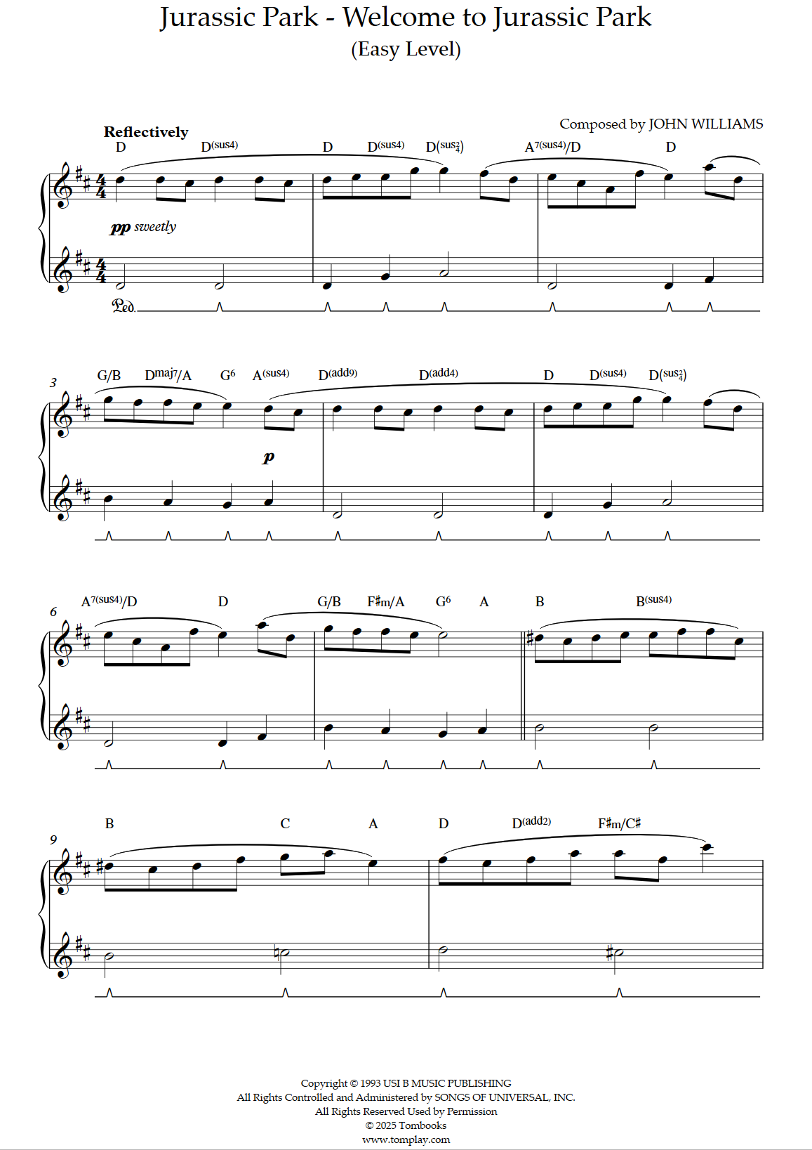 John Williams : Welcome to Jurassic Park (niveau facile, piano solo)