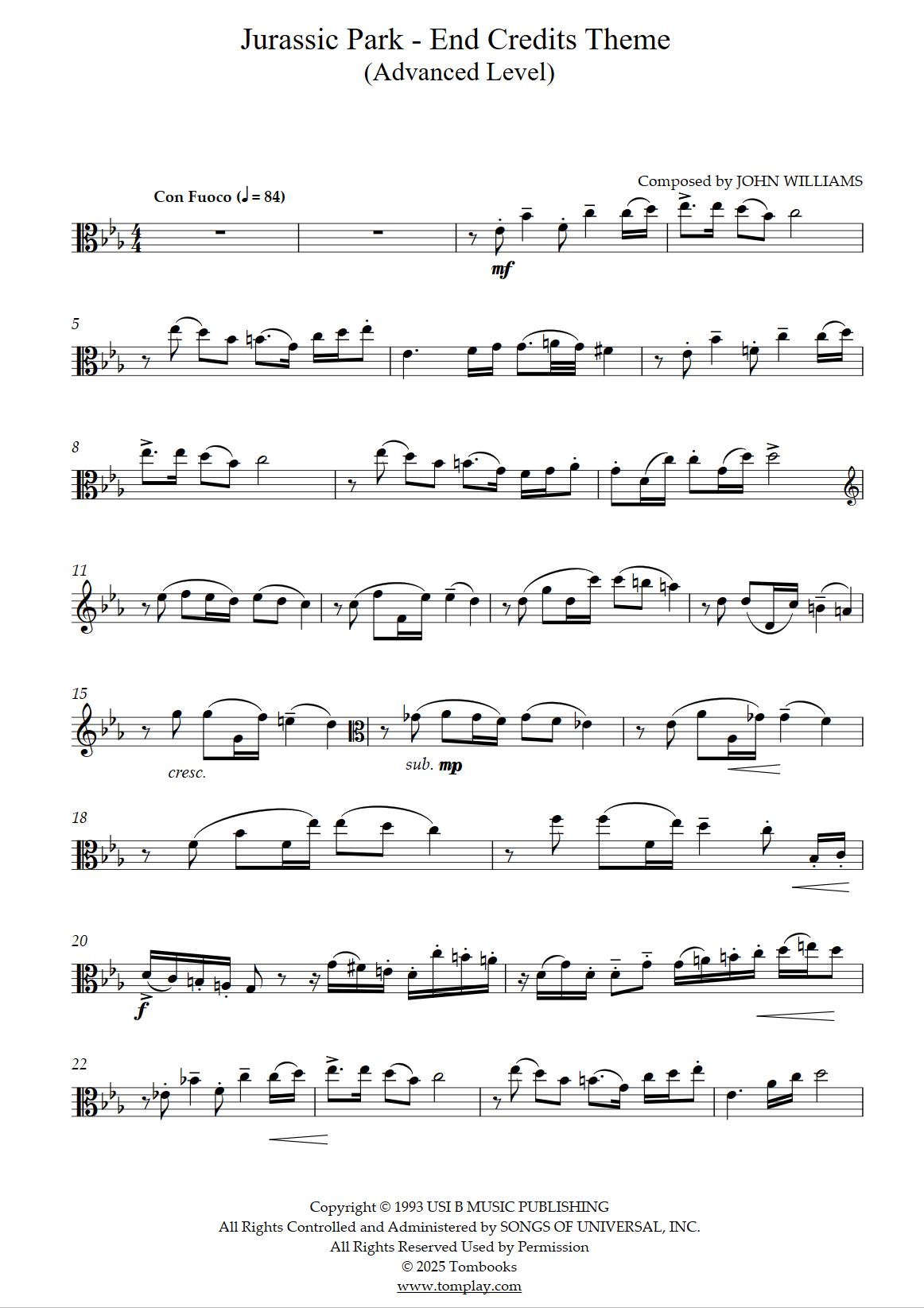 Téléchargez la partition Alto Thème End Credits (niveau difficile) de John Williams. Parti…