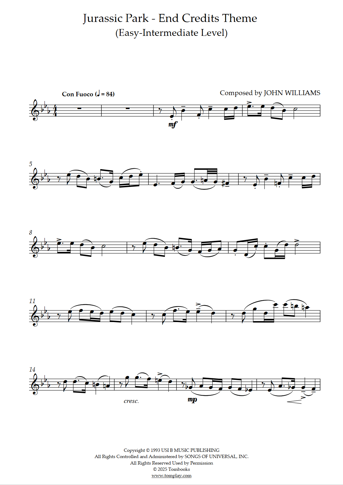 John Williams : Jurassic Park - Thème End Credits (niveau facile)