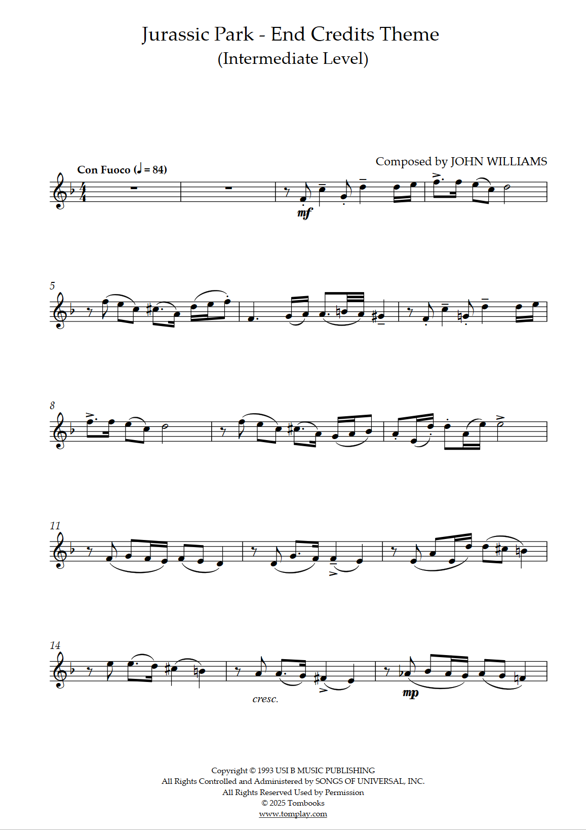 Téléchargez la partition Trompette Welcome to Jurassic Park (niveau facile/intermédiaire) …