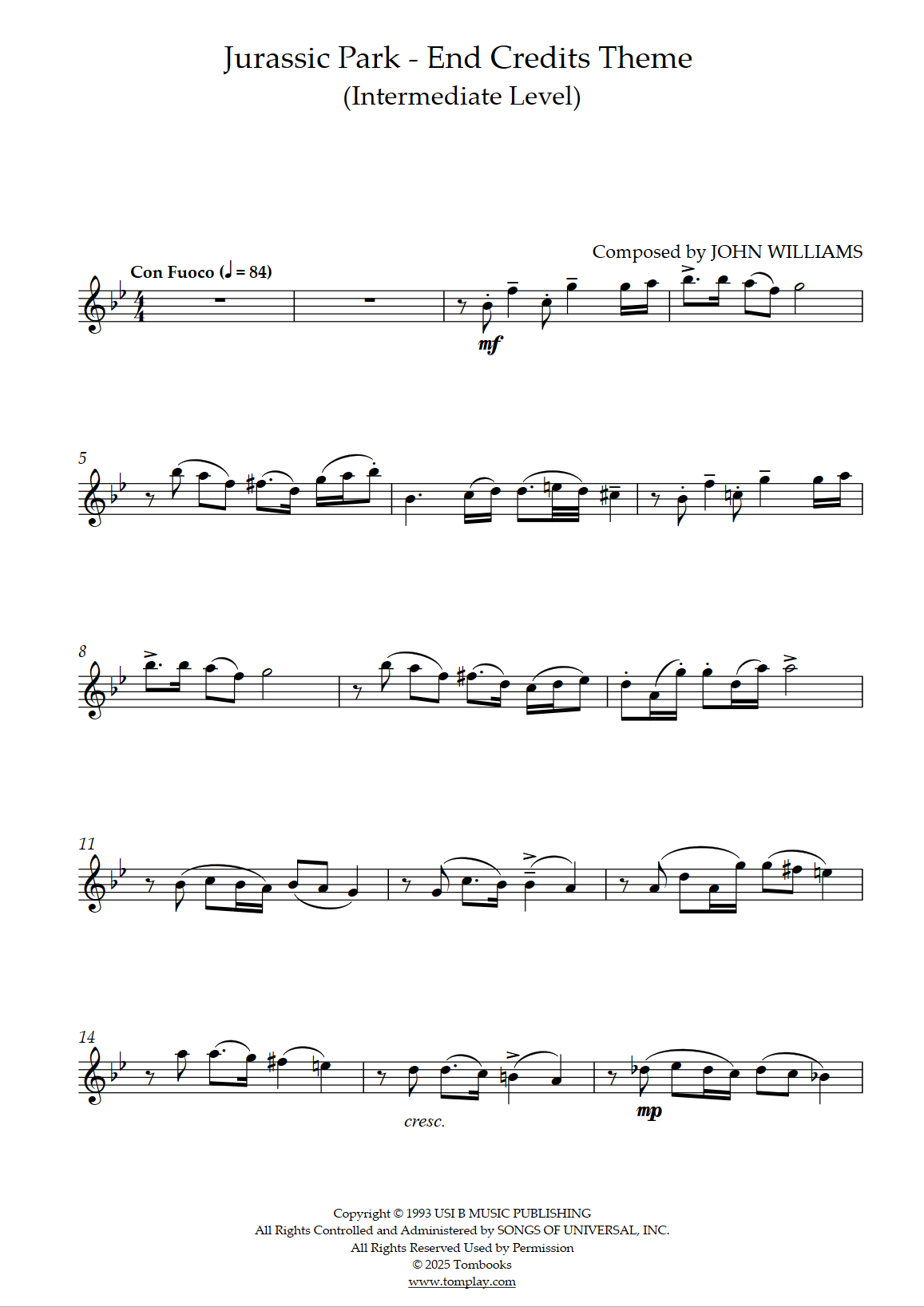 John Williams : Jurassic Park - Thème End Credits (niveau intermédiaire/difficile)