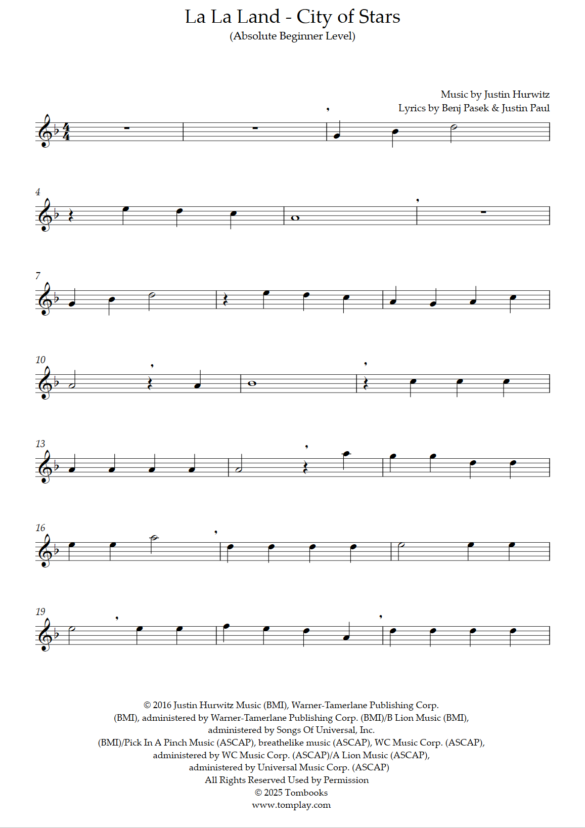 Justin Hurwitz : La La Land - City of Stars (niveau débutant absolu)