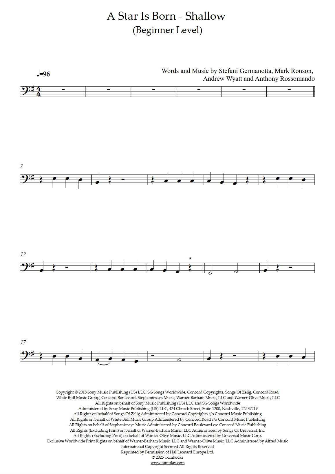 Téléchargez la partition Violoncelle A Star Is Born - Shallow (niveau débutant) de Bradley…