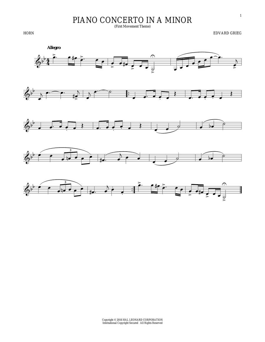 Interactive Download SKU: HX.395468 Composed by Edvard Grieg. This edition: Interactive Download. Classical. French Horn Solo. 1 pages. Published by Hal Leonard - Digital (HX.395468).